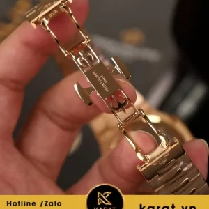 Dây thép mạ vàng hồng 18K liền mạch với vỏ, tạo cảm giác liền khối sang trọng. Các mắt dây được chế tác tỉ mỉ, ôm tay nhẹ nhàng, giúp người đeo luôn cảm nhận được sự thoải mái và đẳng cấp trong từng cử động.
