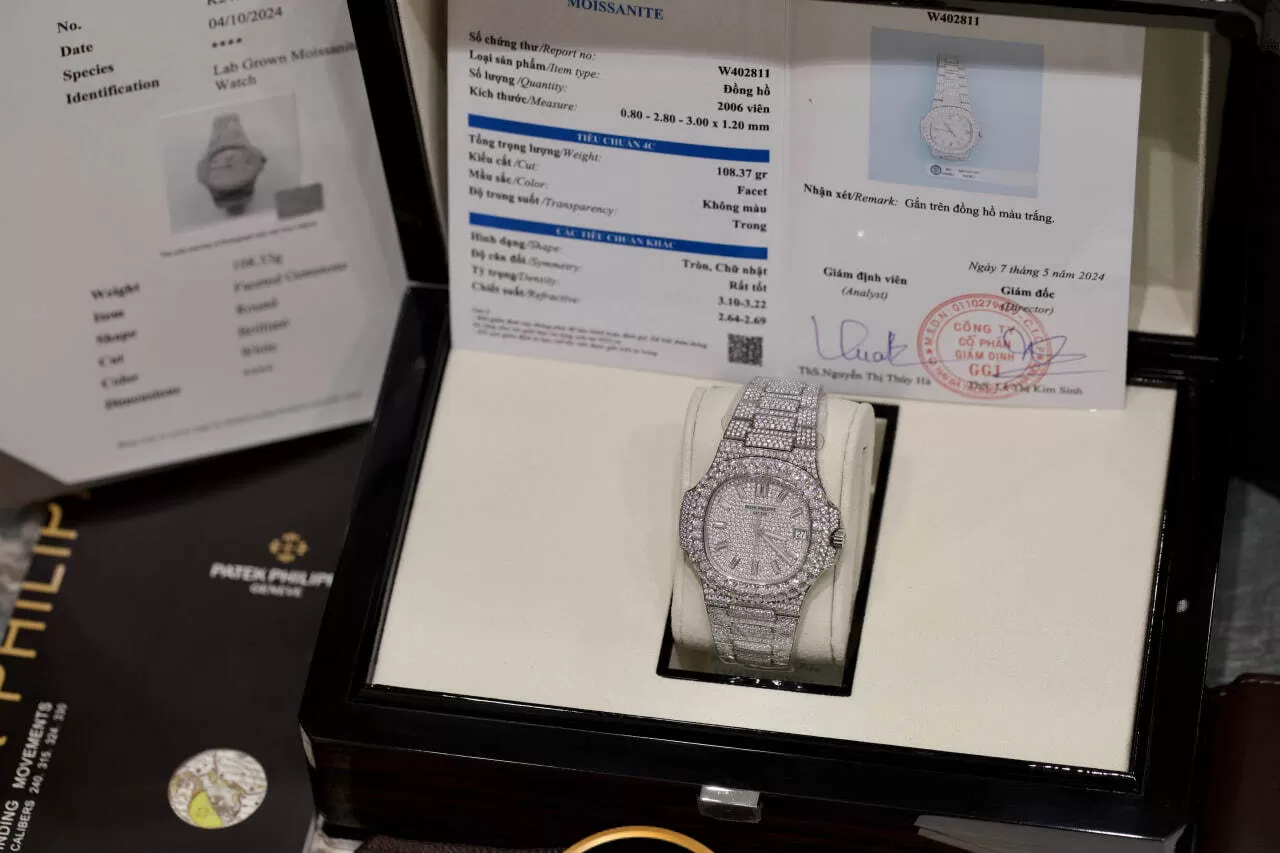 Đồng Hồ Patek Philippe Nautilus 5719 Chế Tác Full Kim Moissanite HongKong là biểu tượng của sự xa xỉ và tinh tế, nơi nghệ thuật kim hoàn hòa quyện cùng công nghệ chế tác đỉnh cao. Với thiết kế đính đá toàn thân và vẻ ngoài rực rỡ, sản phẩm mang đến trải nghiệm sang trọng vượt thời gian. Cùng Karat khám phá kiệt tác này ngay hôm nay.