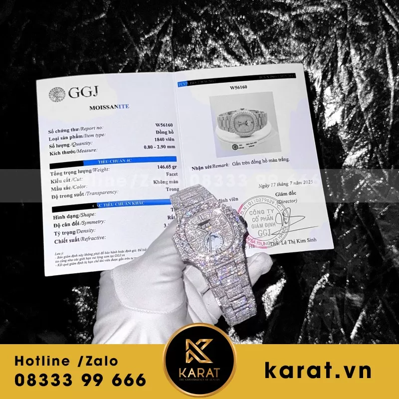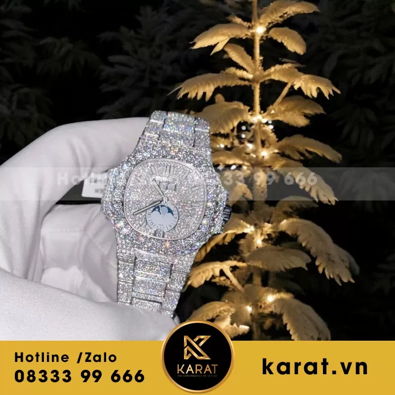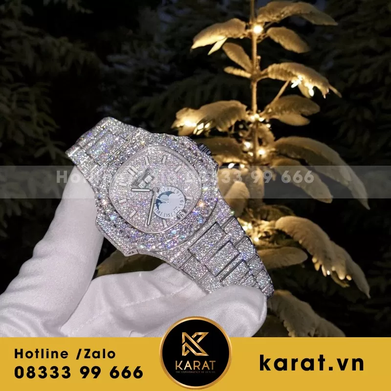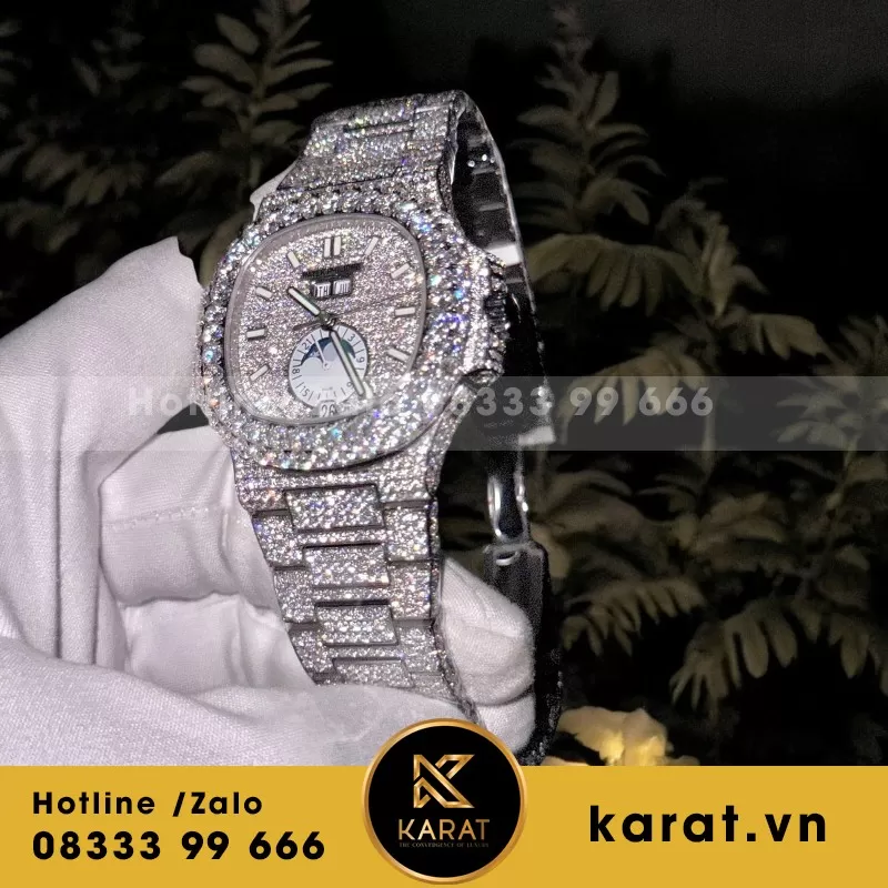 Từng viên đá moissanite được đính kết tỉ mỉ, từng đường nét được hoàn thiện tinh xảo — tất cả tạo nên sức hút khó cưỡng của đồng hồ Patek Philippe Nautilus 5719 phiên bản chế tác tại karat.vn. Với tay nghề thủ công điêu luyện và dịch vụ hậu mãi tận tâm, Karat.vn mang đến trải nghiệm thời gian vừa sang trọng, vừa khác biệt. Khám phá ngay tại karat.vn để cảm nhận đẳng cấp được tái hiện từ một huyền thoại