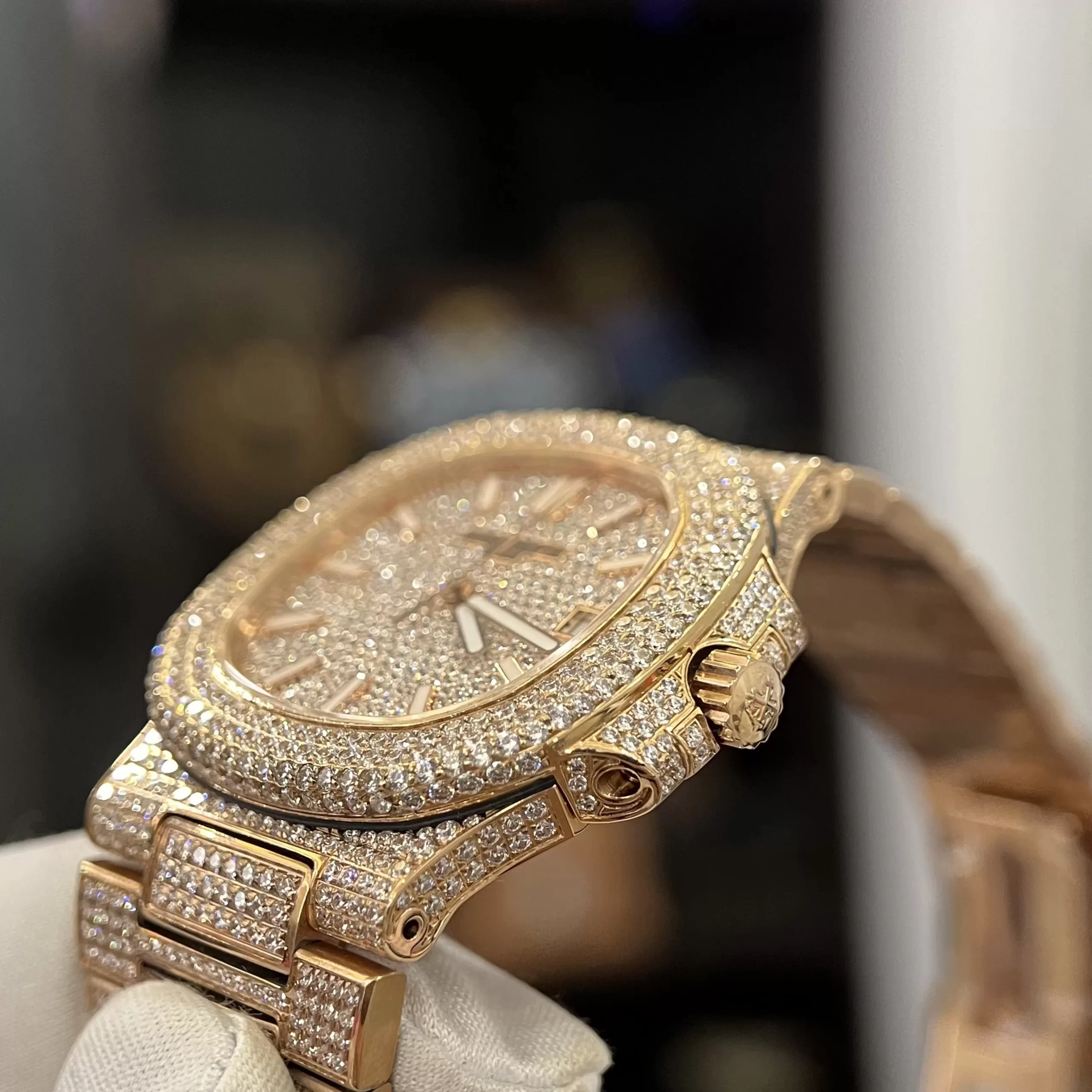 Sở hữu thiết kế lấp lánh với những viên đá tinh xảo, đồng hồ Patek Philippe Nautilus 5719 khẳng định vị thế xa xỉ bậc nhất. Phiên bản Patek Philippe Nautilus Rep cao cấp giúp bạn trải nghiệm trọn vẹn vẻ đẹp huyền thoại này với giá hợp lý hơn.