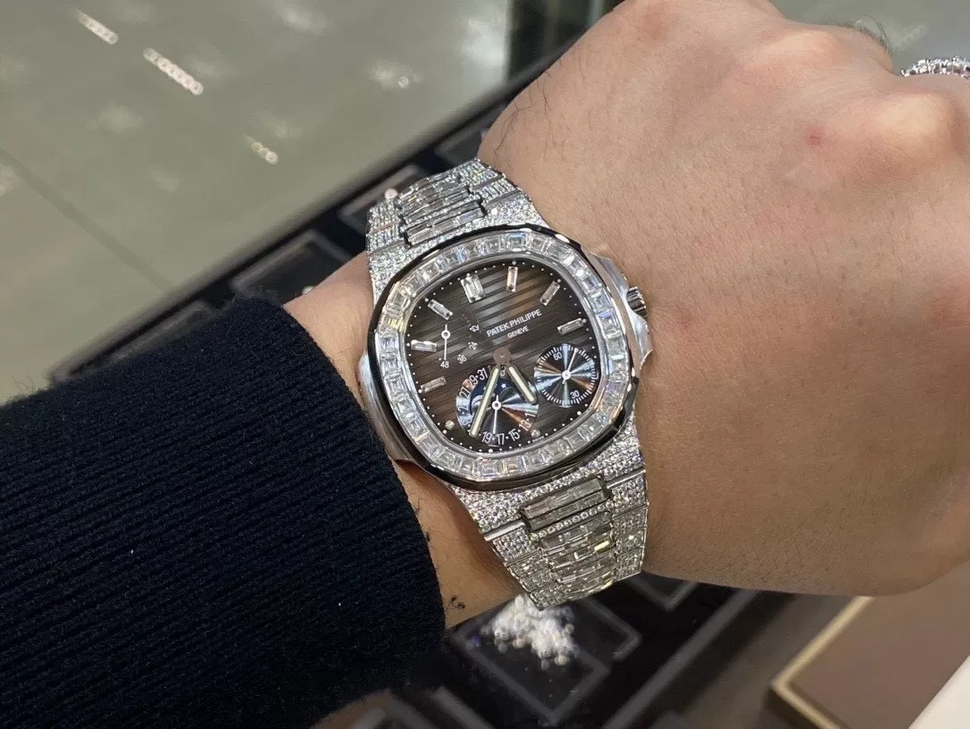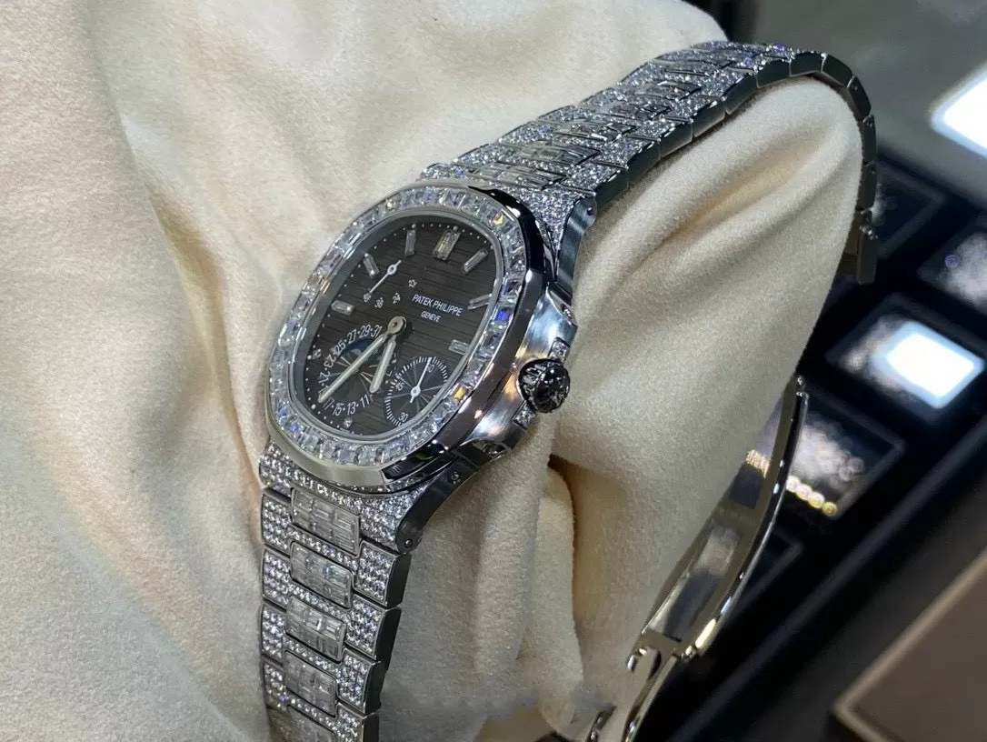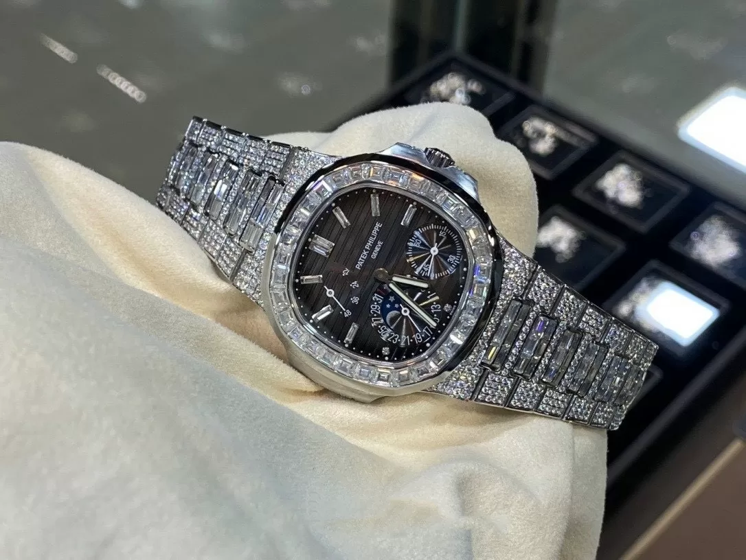 Đồng Hồ Patek Philippe Nautilus 5724 Full Kim Cương Moissanite Super Fake