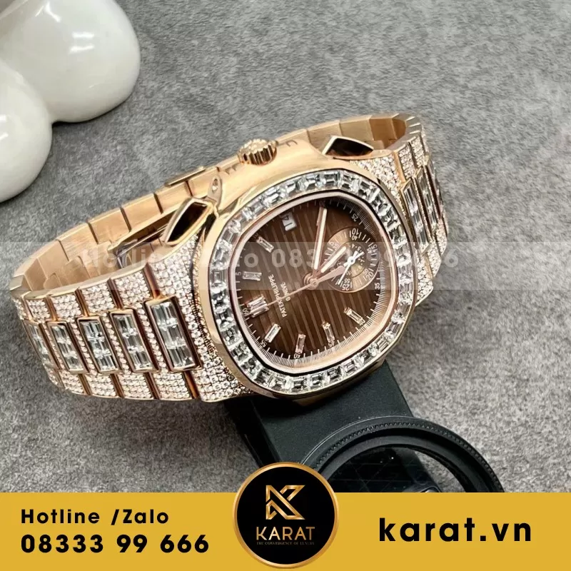 Đồng Hồ Patek Philippe Nautilus 5980r Chế Tác Vàng Hồng 18k Kim Cương Thiên Nhiên 40mm