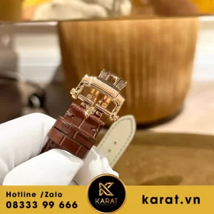 Dây da cá sấu nâu cao cấp, mềm mại ôm sát cổ tay 16-20cm, kết hợp khóa gập vàng hồng an toàn. Thiết kế này mang lại sự thoải mái suốt ngày, dễ dàng thay thế để cá nhân hóa.