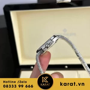 Bộ vỏ thép cao cấp đường kính 35.2mm, dày khoảng 8mm, bezel bát giác khảm đá quý viền mỏng manh. Thiết kế này đảm bảo độ chắc chắn, chống xước tốt nhờ kính sapphire, phù hợp đeo hàng ngày.