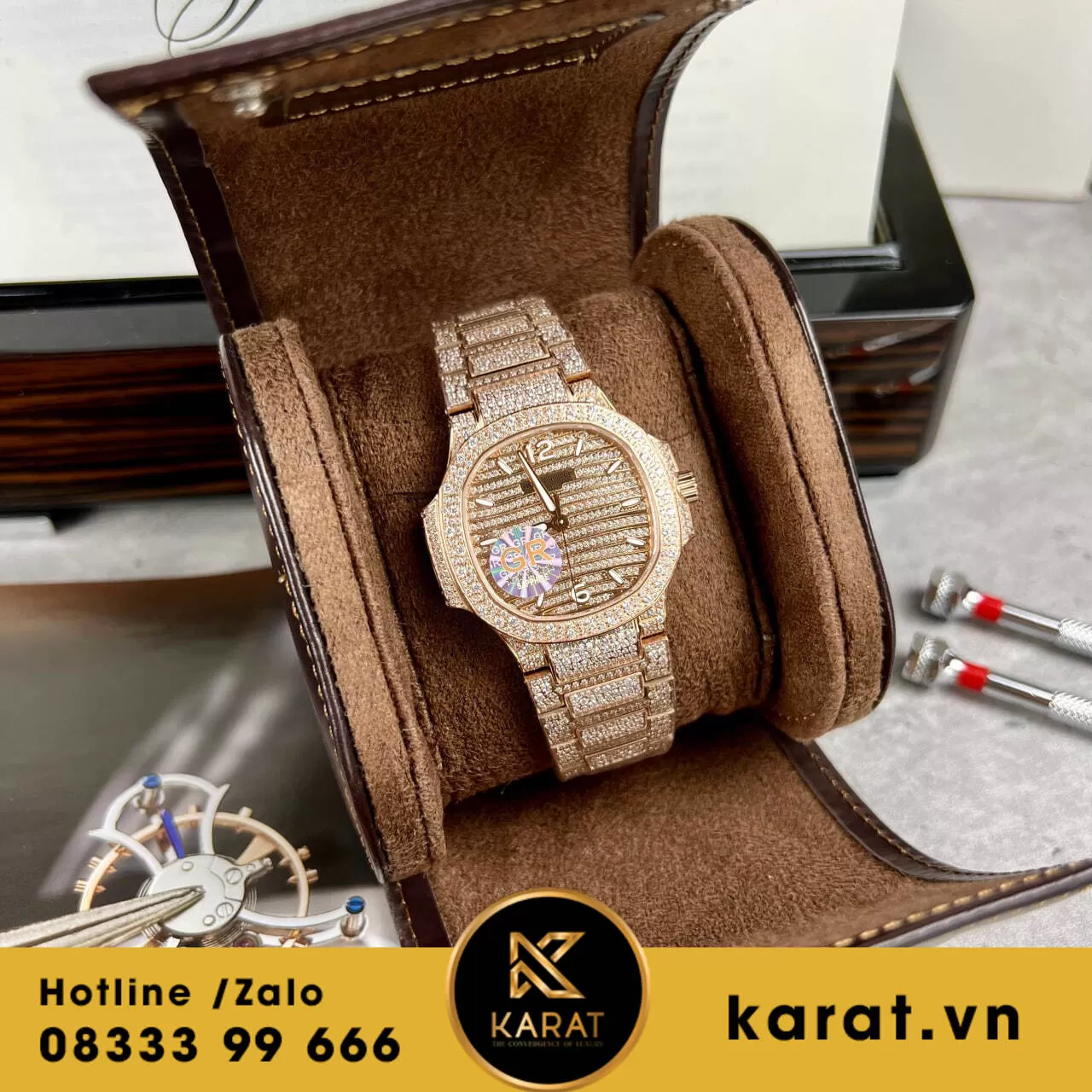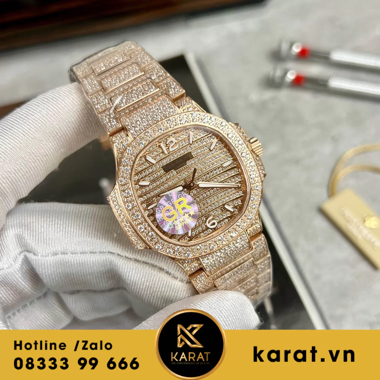 Đồng Hồ Patek Philippe Nautilus 7118 Đá CZ Replica là kiệt tác dành cho những ai yêu thích sự sang trọng và tinh tế. Với thiết kế đính đá toàn bộ, từ mặt số đến vỏ ngoài, sản phẩm mang lại vẻ đẹp cuốn hút và đẳng cấp hiếm có. Đây chính là lựa chọn hoàn hảo cho người dùng muốn khẳng định phong cách cá nhân qua từng chi tiết tinh xảo. Cùng Karat khám phá sức hút đặc biệt của mẫu đồng hồ này.
