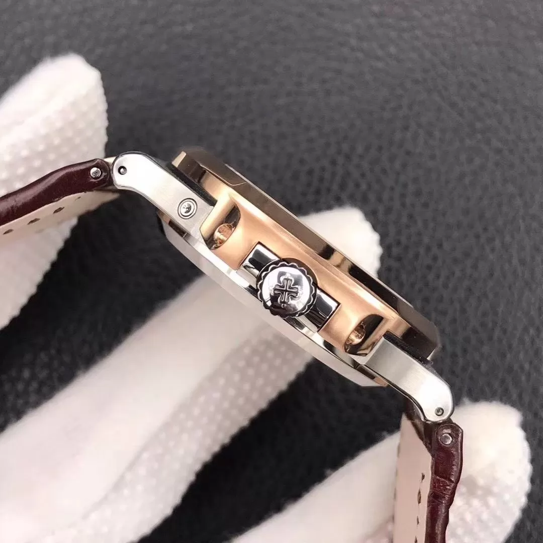 Đồng hồ Patek Philippe Nautilus Rep 5712R nổi bật trong dòng Nautilus với lớp gold rose 18K óng ánh, kế thừa di sản từ 1976. Phiên bản replica 1:1 nhấn mạnh complication thông minh, mang đến sự cân bằng hoàn hảo giữa độ bền hàng ngày và thẩm mỹ cao cấp, lý tưởng cho bộ sưu tập cá nhân.
