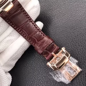 Dây da cá sấu nâu cao cấp mềm mại, khóa gập rose gold an toàn, ôm sát cổ tay thoải mái cho sử dụng linh hoạt.