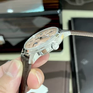 Đồng hồ Patek Philippe Complications 5320G nổi bật trong dòng Grand Complications nhờ perpetual calendar, moonphase sống động. Phiên bản replica salmon dial nhấn mạnh sự cân bằng giữa thiết kế cổ điển và chức năng hiện đại, phù hợp cho quý ông đánh giá cao kỹ thuật Thụy Sĩ tinh xảo.