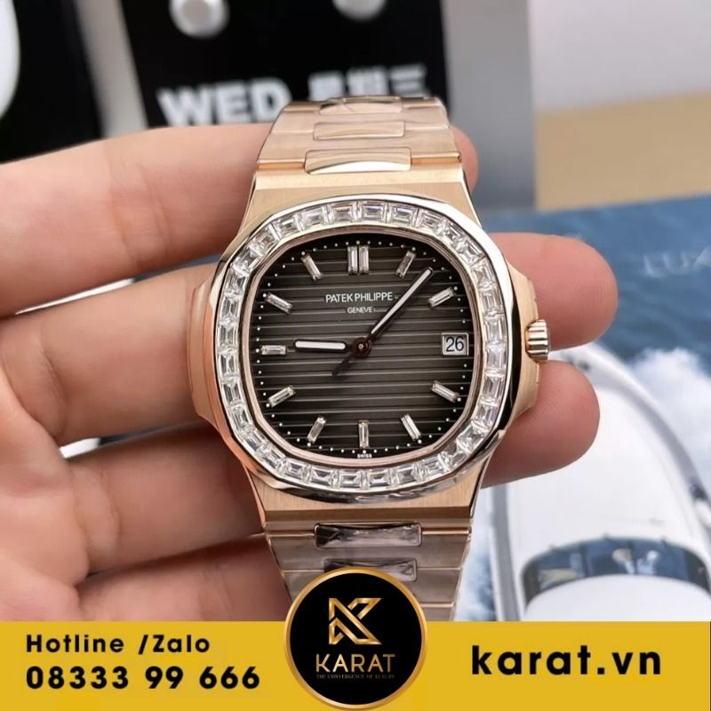 Với thiết kế vàng hồng sang trọng và viền kim cương tinh tế, đồng hồ Patek Philippe Nautilus 5723 Gold khẳng định đẳng cấp khác biệt. Phiên bản Patek Philippe Nautilus Rep giúp người yêu đồng hồ trải nghiệm trọn vẹn vẻ đẹp xa xỉ với chi phí dễ tiếp cận hơn.