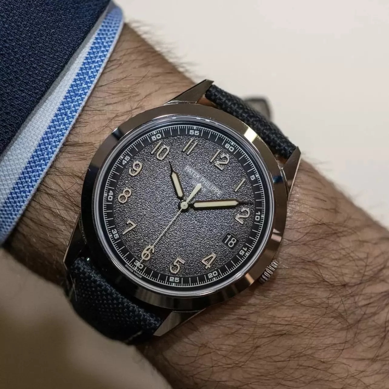 Mặt số xám than với hiệu ứng hạt sỏi độc đáo kết hợp bộ kim phủ dạ quang màu be giúp dễ dàng quan sát trong mọi điều kiện ánh sáng. Kính Sapphire nguyên khối chống xước, chống lóa cực tốt – yếu tố quan trọng làm nên chất lượng siêu cấp.
