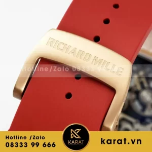 Dây cao su đỏ chế tác theo form RM, mềm – ôm tay – thoáng khí, mang đến cảm giác đeo bền bỉ và thoải mái. Sắc đỏ nổi bật góp phần tôn lên phong cách thể thao mạnh mẽ của phiên bản RM035 Americas.