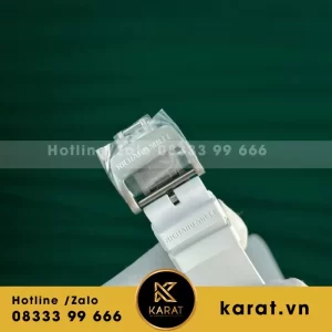 Mẫu RM055 được trang bị dây cao su cao cấp màu trắng – biểu tượng của phong cách thể thao thanh lịch. Dây có khả năng co giãn linh hoạt, kháng mồ hôi và mang lại cảm giác dễ chịu ngay cả khi đeo lâu trong thời gian dài.