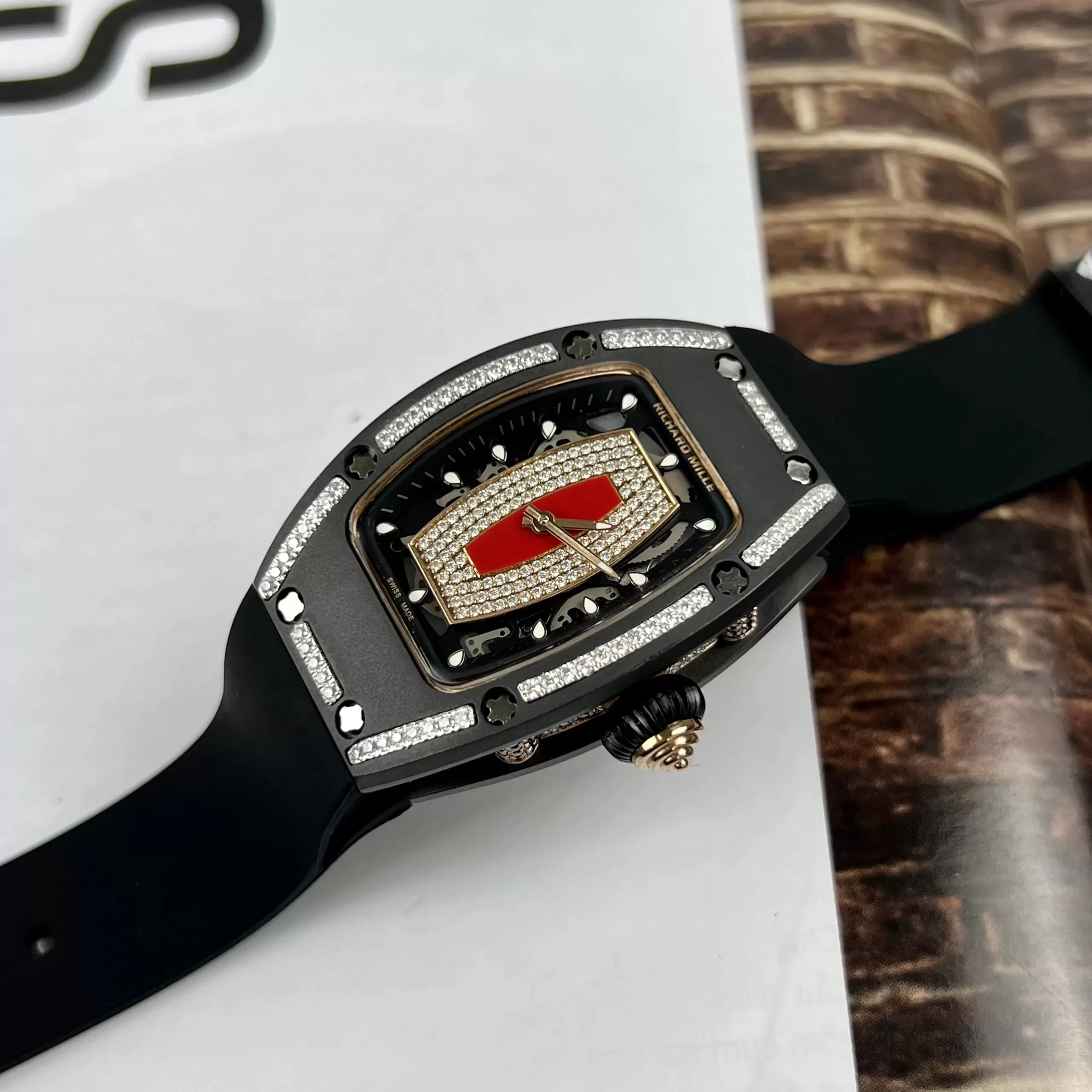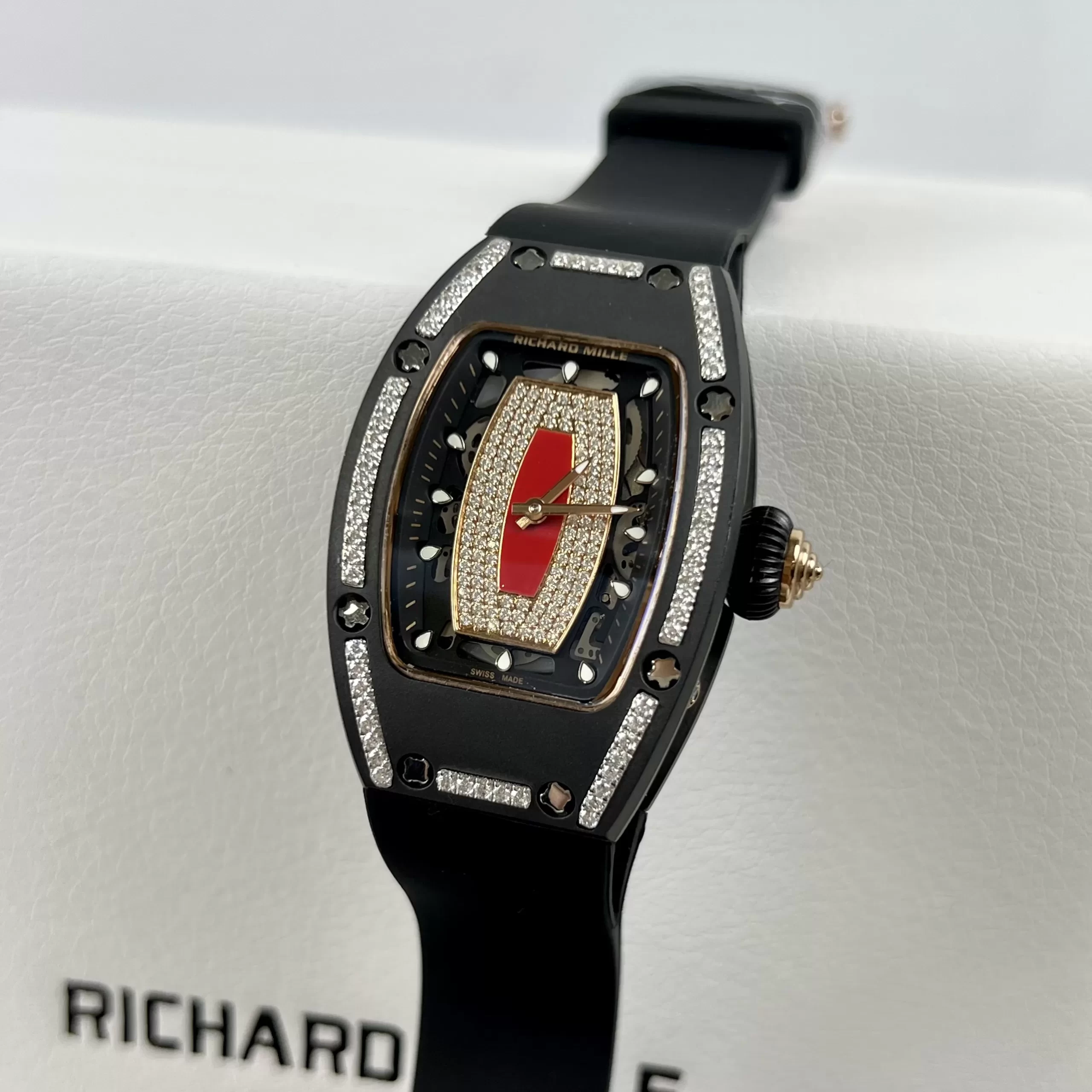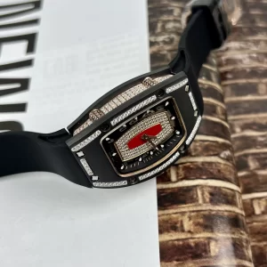 Đồng hồ Richard Mille RM07 Like Auth đại diện cho đỉnh cao chế tác replica, lấy cảm hứng từ dòng RM07 nổi tiếng với thiết kế tonneau độc đáo. Phiên bản ceramic đen này nổi bật nhờ thép bọc vàng nạm kim cương lấp lánh, kết hợp bộ máy automatic Swiss Made chính xác. Là hàng chế tác tinh vi, sản phẩm mang lại sự thoải mái cho cổ tay nữ, lý tưởng cho ai yêu thích replica 1:1 chất lượng.