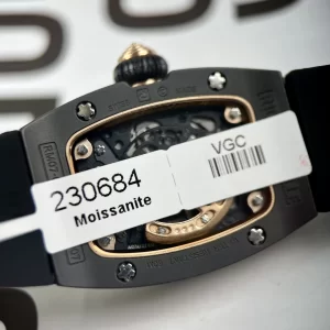 Bộ vỏ đồng hồ Richard Mille RM07 Like Auth làm từ ceramic đen cao cấp, thép bọc vàng nạm kim cương, kích thước 36mm gọn nhẹ với khả năng chịu nước 50m tốt. Thiết kế tonneau của super clone này tạo sức hút mạnh mẽ.