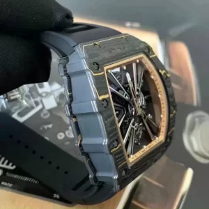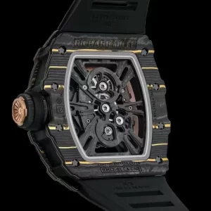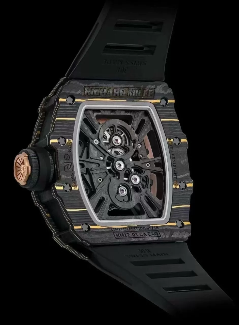 Khung vỏ đồng hồ Richard Mille RM12-01 Tourbillon carbon replica được chế tác từ cacbon chắc chắn, chịu lực tốt, không bị oxi hóa, đặc biệt là chống ăn mòn trong môi trường mặn của nước biển.