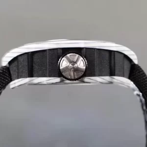 Dây đeo đồng hồ Richard Mille RM53-01 siêu cấp cacbon cũng trong suốt, vừa êm ái, mềm mại lại vô cùng hài hoà với thiết kế của cả chiếc đồng hồ. Để tạo nên sự thoải mái, an toàn cho người sử dụng, dây đeo cũng được các nhà chế tác khử mùi trước khi gắn vào sản phẩm. Vì vậy bạn có thể hoàn toàn yên tâm đeo chiếc đồng hồ trong thời gian dài mà không sợ bị in hằn hay bí rít.