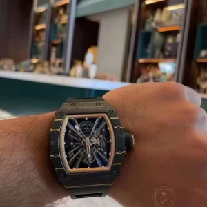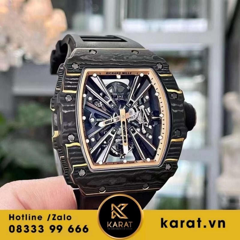 RM12-01 gây ấn tượng mạnh bởi sự kết hợp giữa vàng Gold, cơ chế Tourbillon tinh xảo và thiết kế ôm tay vừa vặn, mang đến trải nghiệm sang trọng và hiện đại.