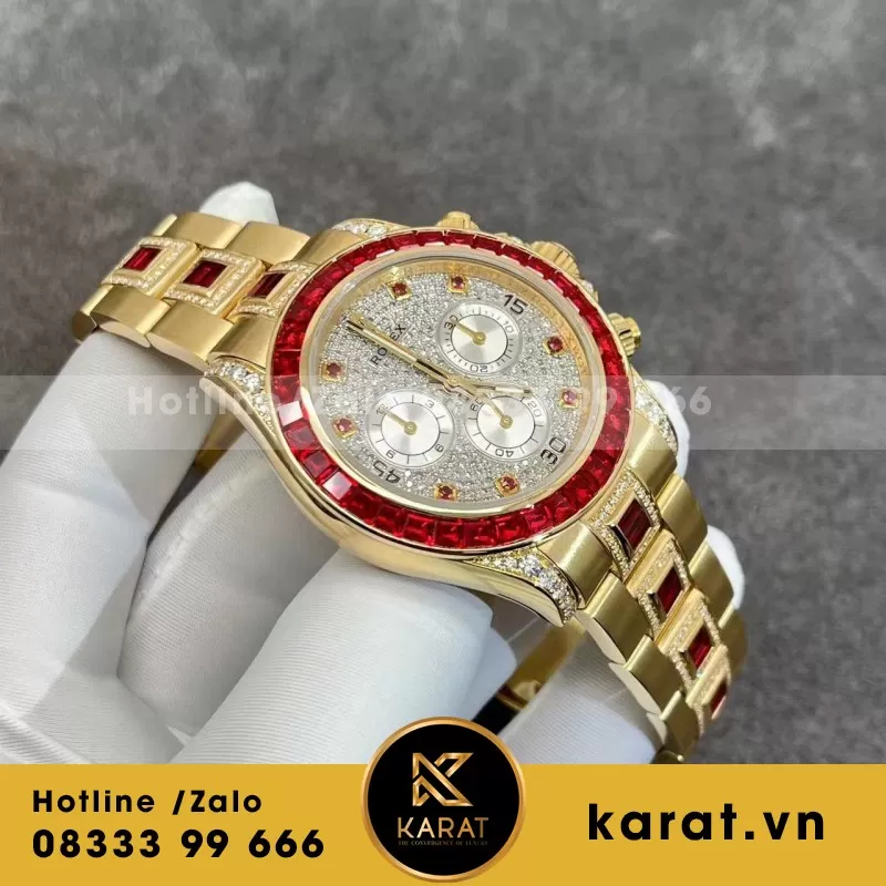 Đồng Hồ Rolex Chế Tác Daytona 126598TRU Vàng 18K Nguyên Khối + Ruby + Kim Cương Tự Nhiên 40mm