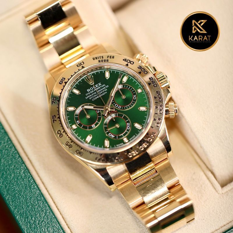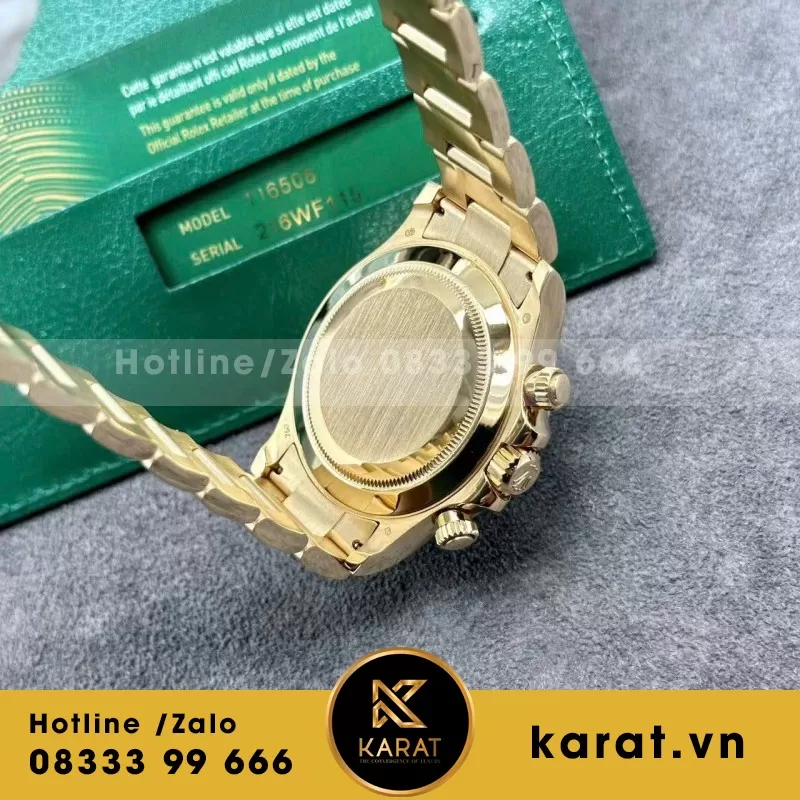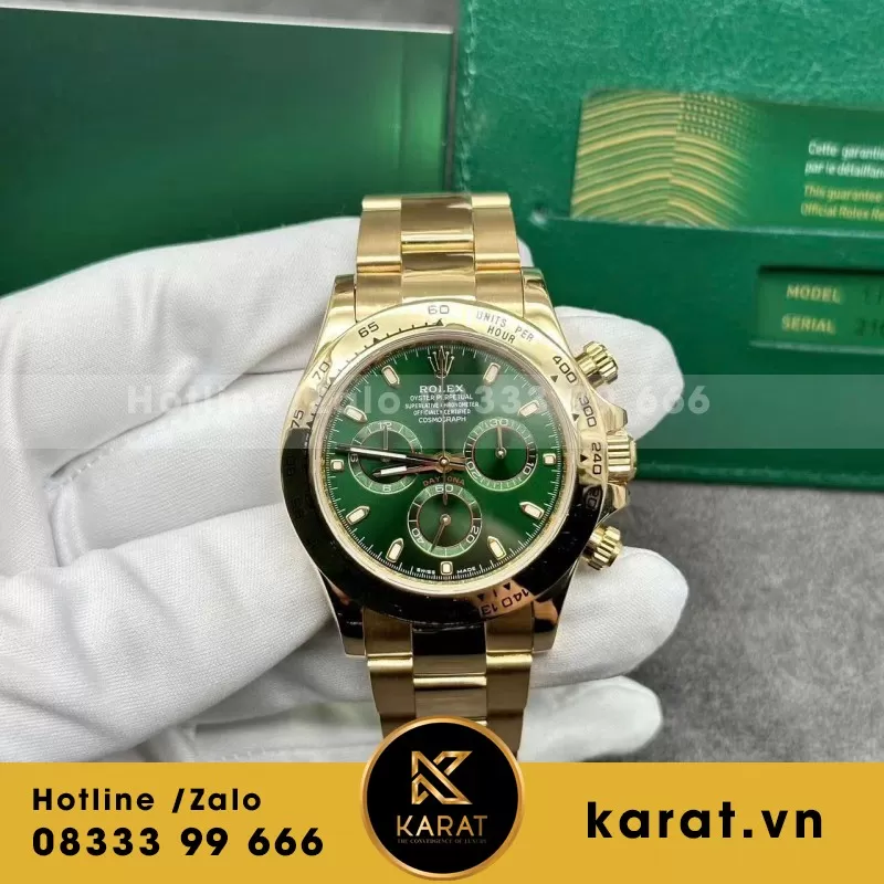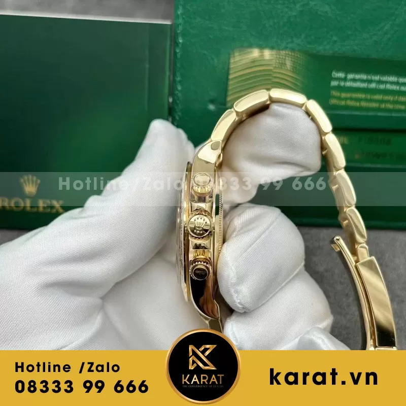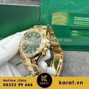 Karat.vn tự hào là đơn vị cung cấp các phiên bản rolex daytona 1:1 chế tác bọc vàng thật, đạt chuẩn thẩm mỹ và độ hoàn thiện cao. Khi mua tại Karat, khách hàng được bảo hành 5 năm, spa đồng hồ miễn phí trọn đời, cùng chính sách thu cũ đổi mới hấp dẫn.