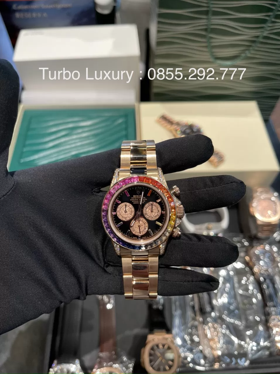 ROLEX DAYTONA RAINBOW 116505RBOW VÀNG KHỐI 18K KIM CƯƠNG THIÊN NHIÊN