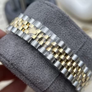 Mặt đồng hồ được bảo vệ bởi lớp kính sapphire chống lóa và trầy xước hoàn hảo. Liên kết mặt số là dây đeo Jubilee 5 mối nối nhỏ mang lại cảm giác dễ chịu cho người đeo. Bộ khóa dạng gấp giúp người đeo dễ chỉnh sửa kích thước ôm sát cổ tay toát lên vẻ sang trọng và đẳng cấp.