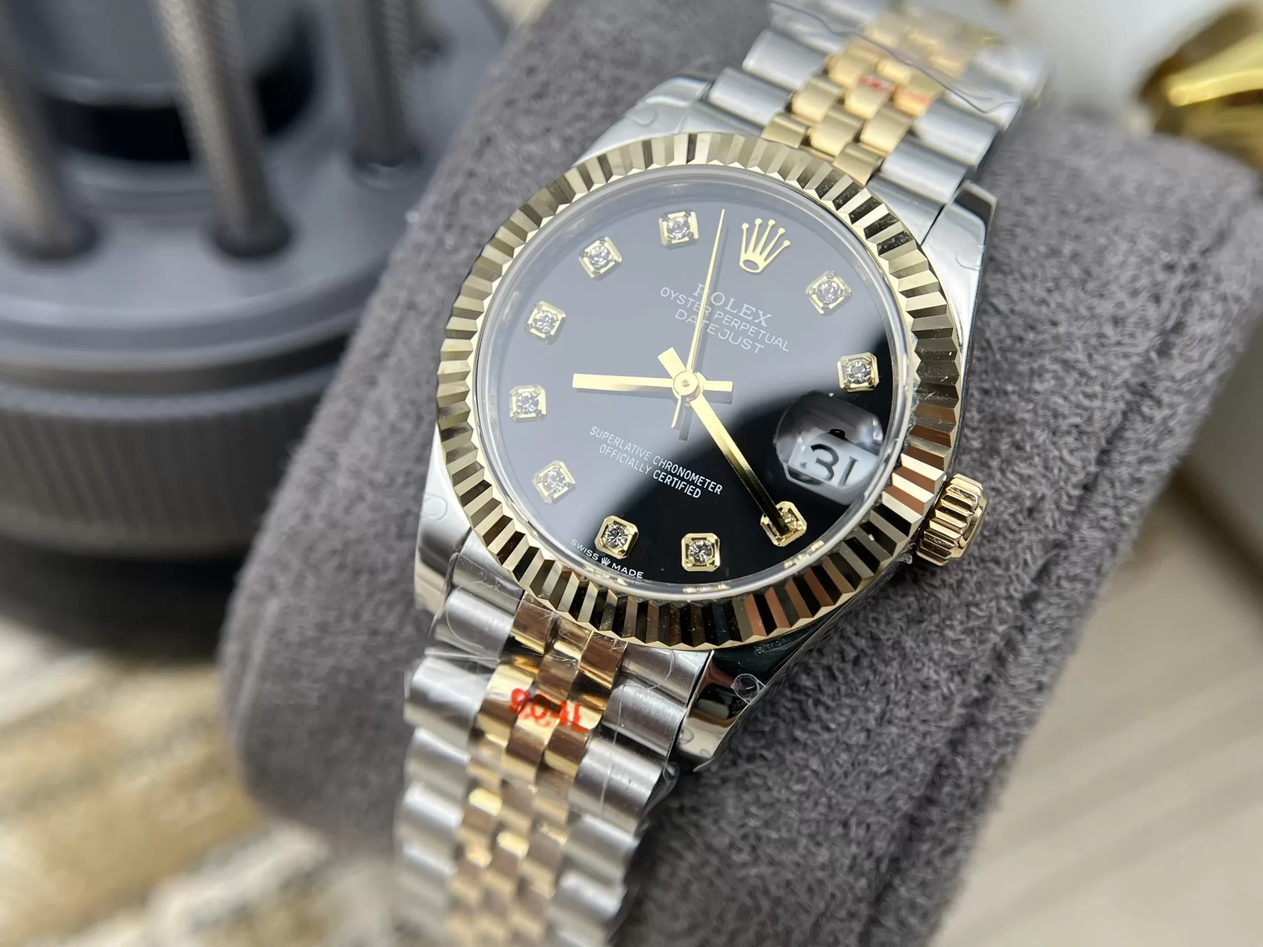 Đồng hồ Rolex Datejust 116233 mặt số đen nạm kim cương like auth lắp đặt bộ máy tự động Cal.3135
