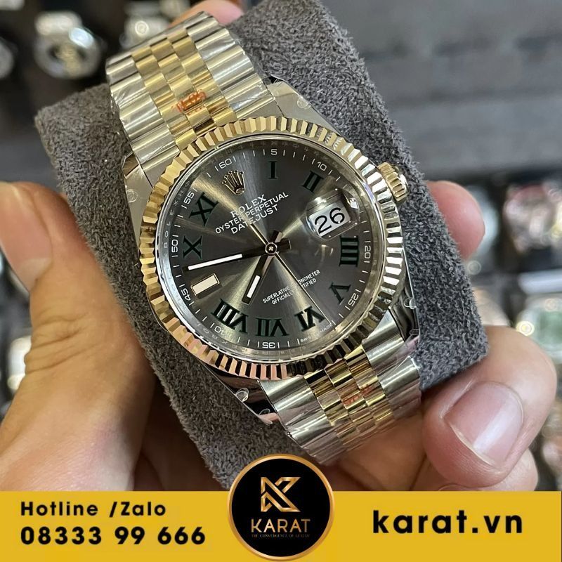 Rolex Datejust 126333 là biểu tượng của sự kết hợp hoàn hảo giữa đẳng cấp và độ chính xác vượt trội. Với phiên bản mặt số xám ánh khói, cọc số La Mã mạ vàng 18k cùng vành demi vàng nổi bật, chiếc đồng hồ mang lại vẻ đẹp lịch lãm và sang trọng vượt thời gian. Hãy cùng Karat.vn – đồng hồ chế tác 1-1 khám phá chi tiết tuyệt phẩm Đồng hồ Rolex Datejust 126333 ngay dưới đây.