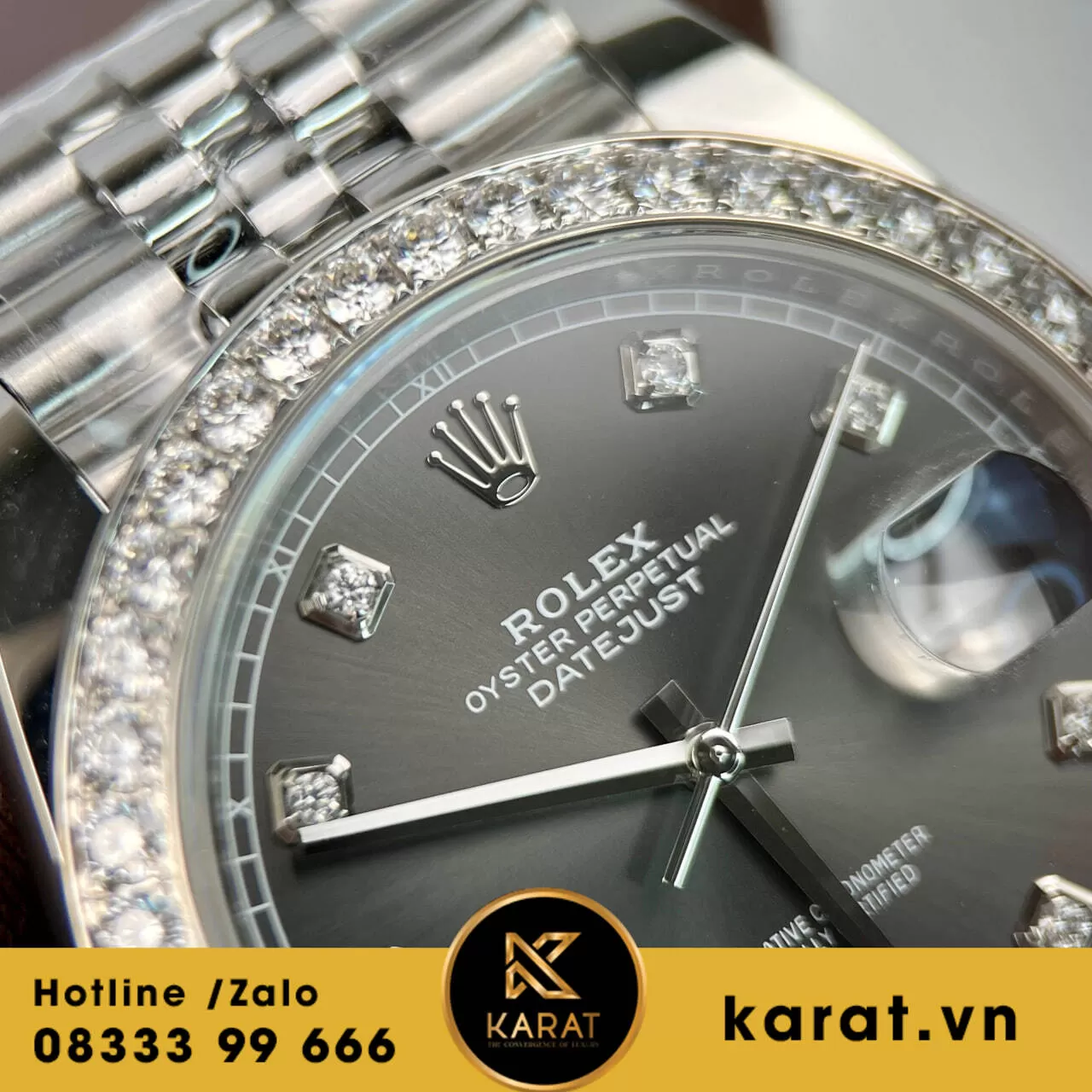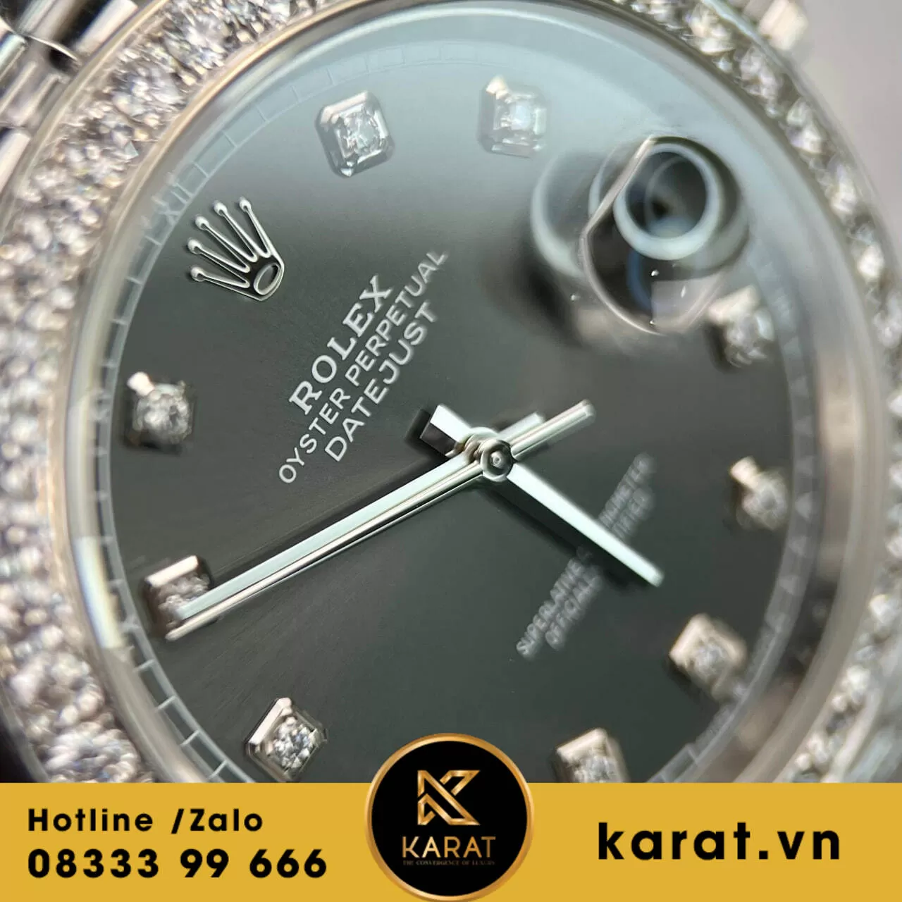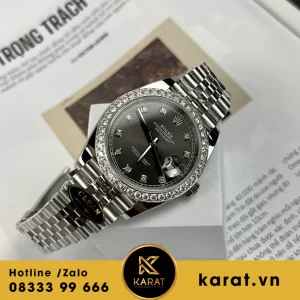 Đồng hồ rolex datejust 41 126334 mặt đen viền moissanite replica