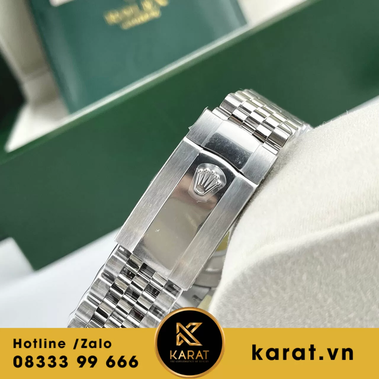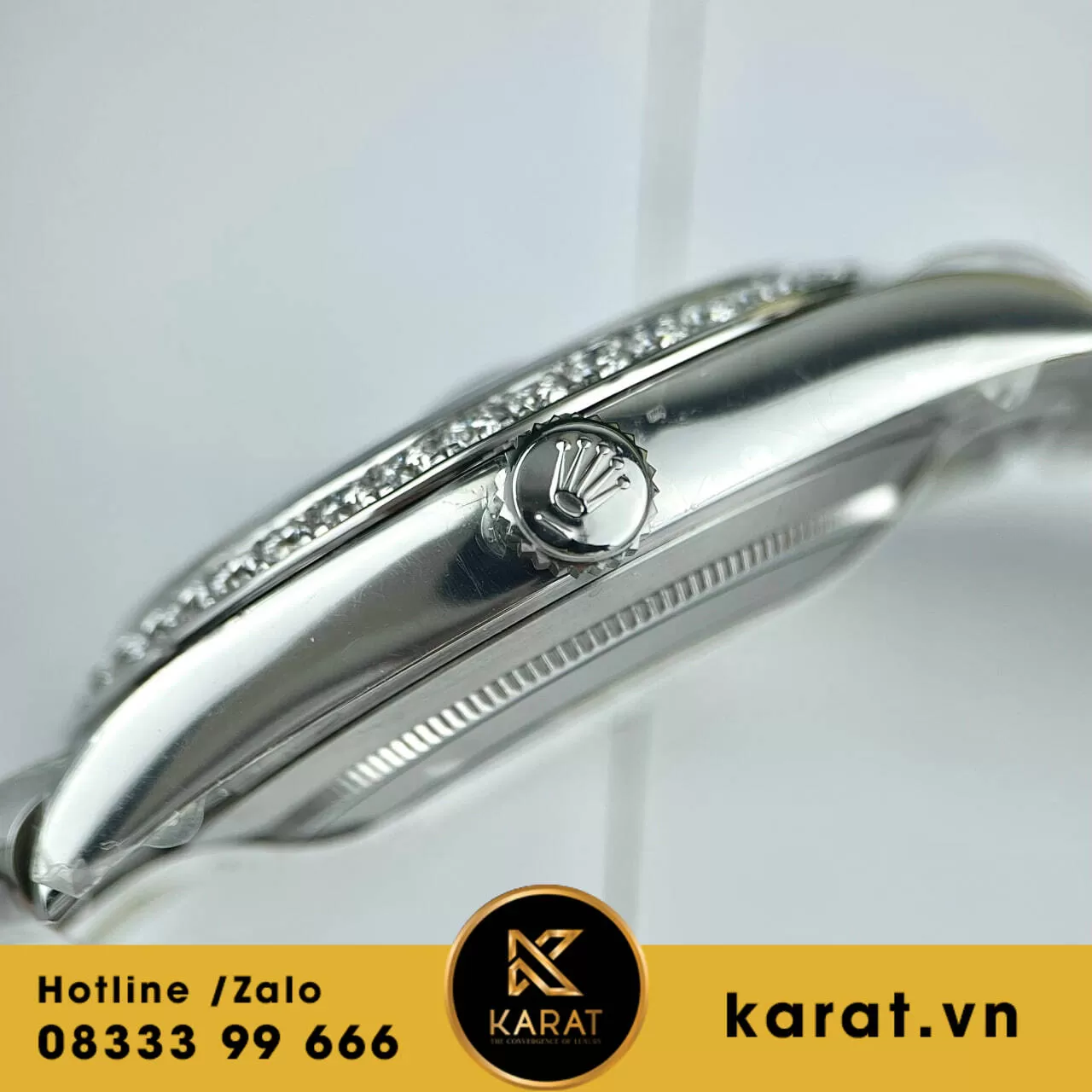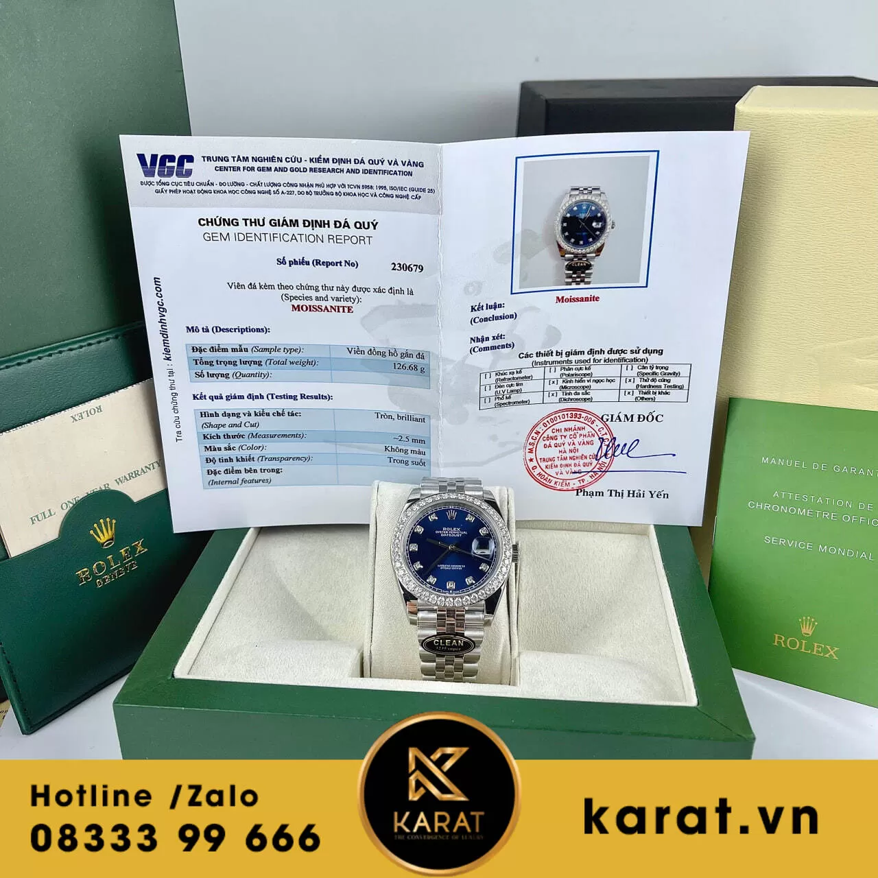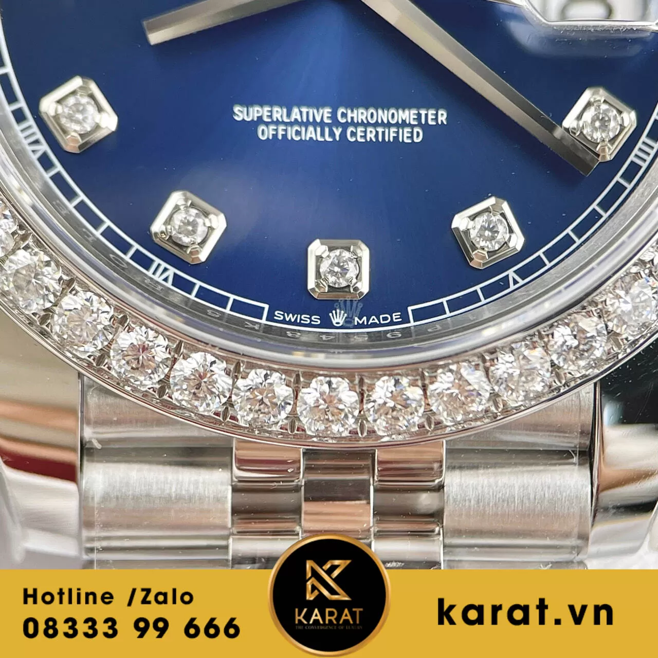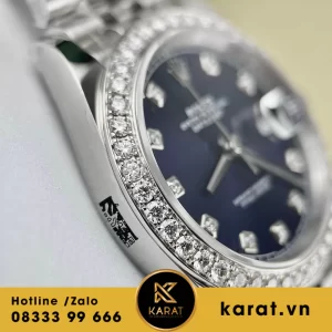 Đồng hồ rolex datejust 41 mặt xanh dương viền moissanite replica