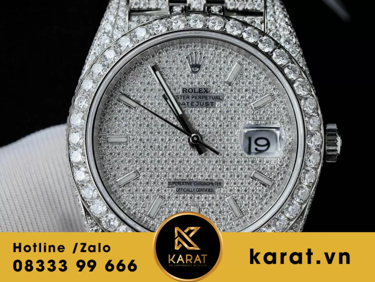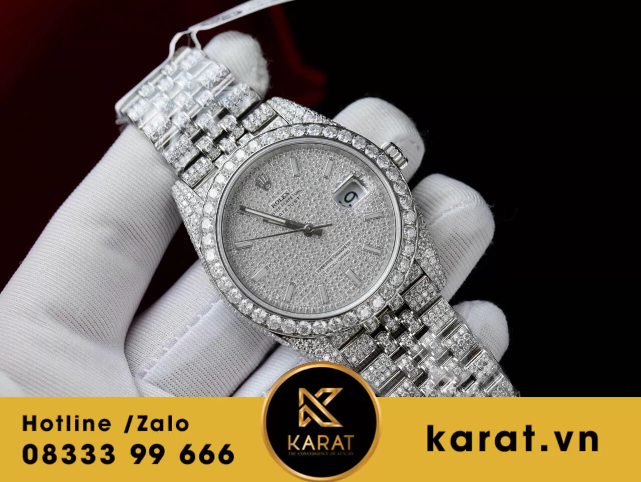 Đồng hồ rolex datejust custom full Moissanite 41mm replica
