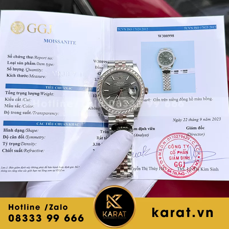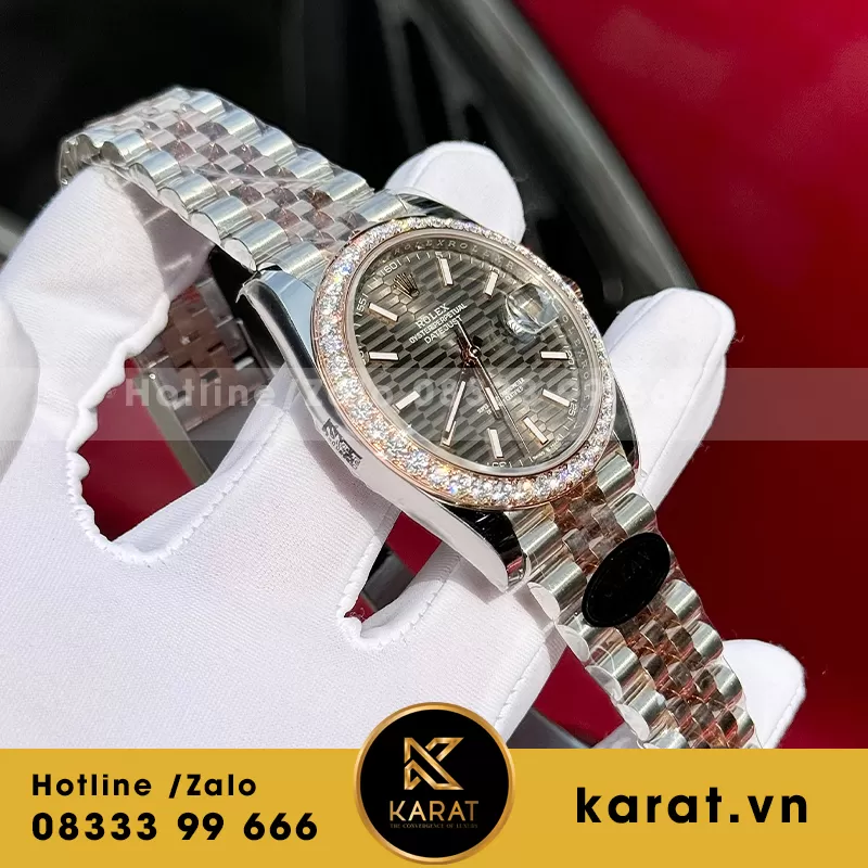 Đồng hồ rolex datejust demi vàng hồng độ viền kim moissanite 2.5ly nhà máy clean