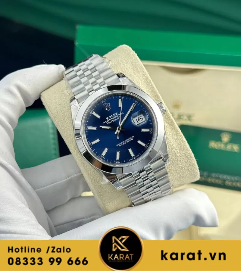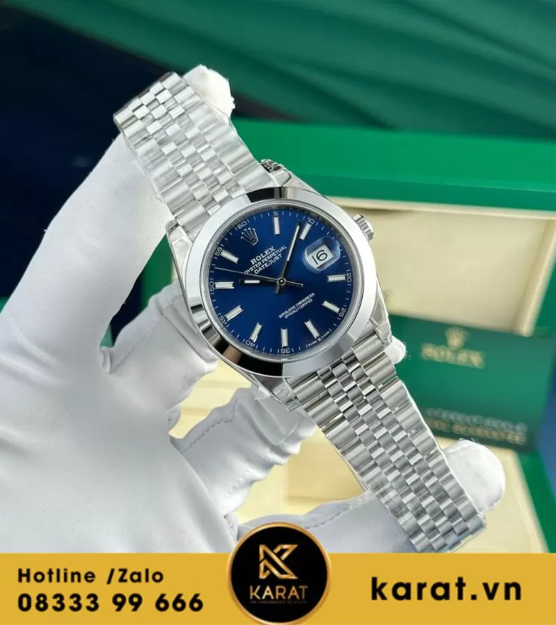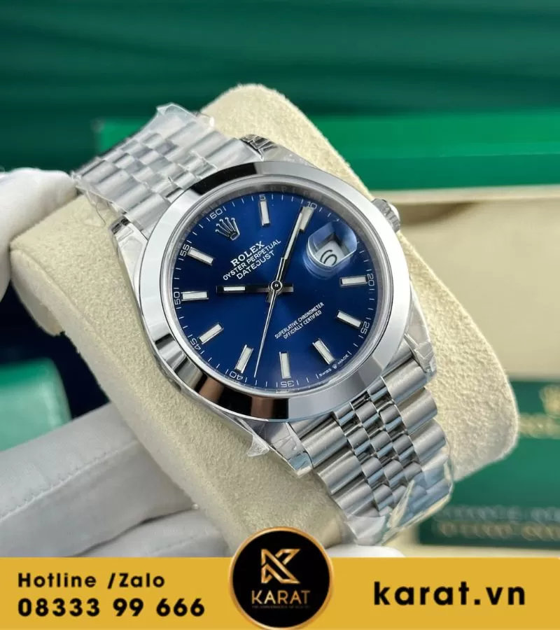 Đồng hồ Rolex Datejust mặt xanh dương viền trơn nhà máy vs 41mm cal 3235