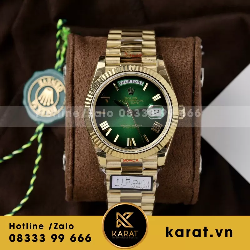 Nếu bạn đang tìm kiếm một địa chỉ uy tín để sở hữu Đồng Hồ Rolex Day-Date, Karat chính là lựa chọn hoàn hảo. Tại đây, bạn có thể trải nghiệm trực tiếp các phiên bản cao cấp đến từ các nhà máy hàng đầu như QF, ZF, EW,… Mỗi sản phẩm đều được kiểm định kỹ lưỡng trước khi đến tay khách hàng, cam kết mang lại chất lượng và dịch vụ hậu mãi vượt trội.