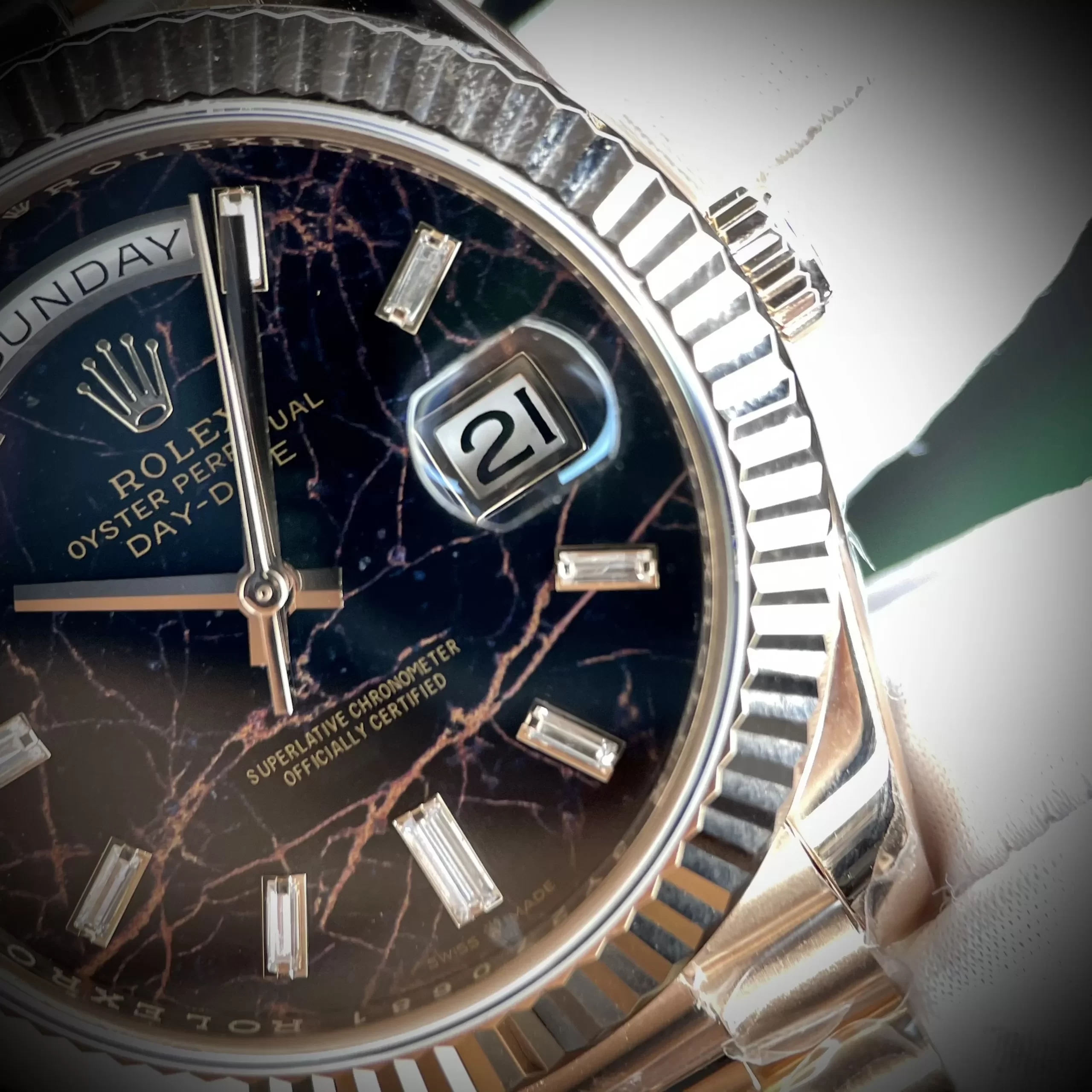 Đồng hồ Rolex Day-Date 40 228235 Mặt Số Eisenkiesel siêu cấp 1:1 làm hoàn toàn từ chất liệu cao cấp, được sản xuất trên dây chuyền hiện đại, được trang bị máy ETA nguồn gốc Thụy Sĩ nên độ bền hay tính năng đều không hề kém cạnh.