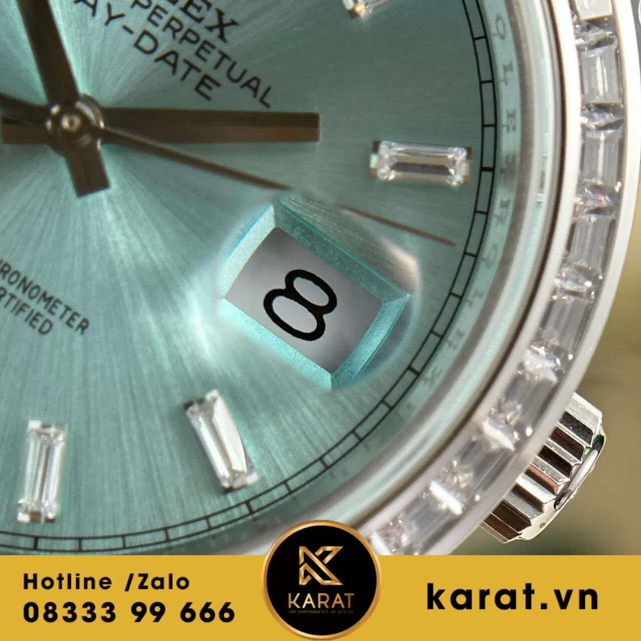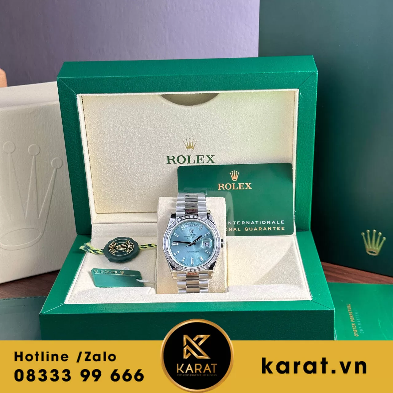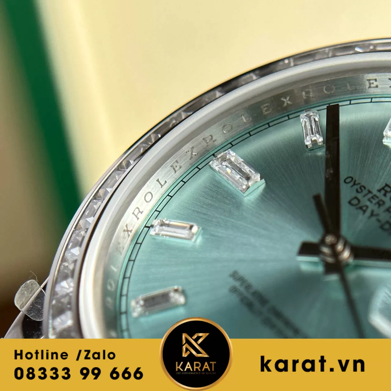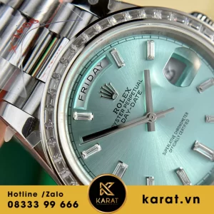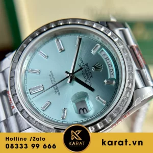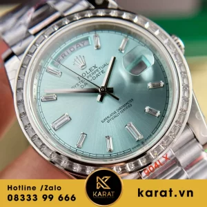 Đồng hồ Rolex Day-Date 40mm Ice Blue cọc số niềng đá Baguette 175g