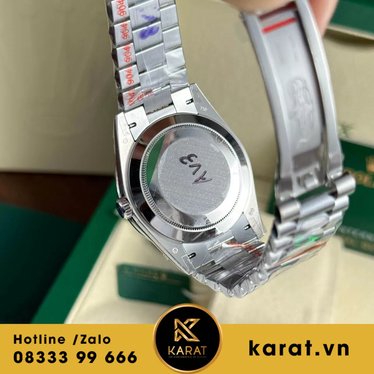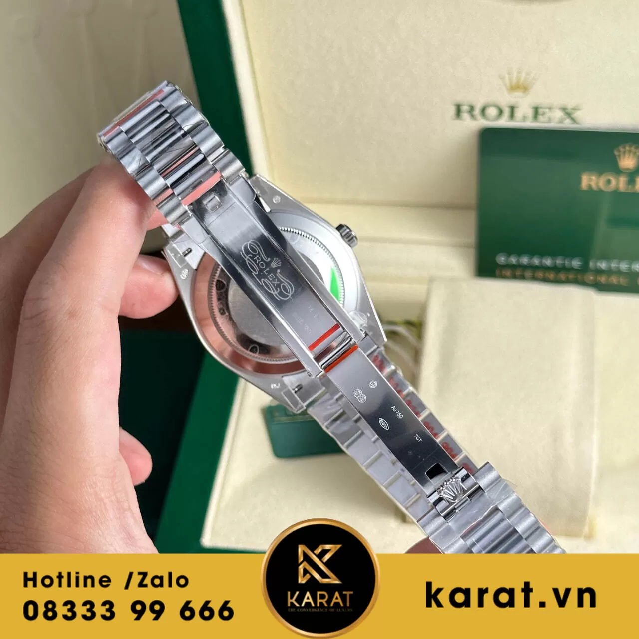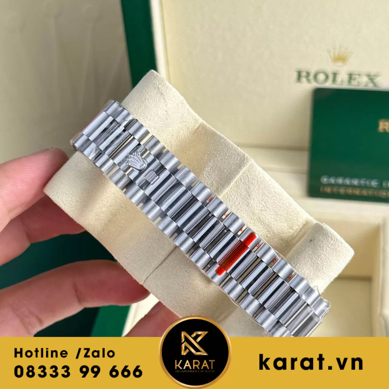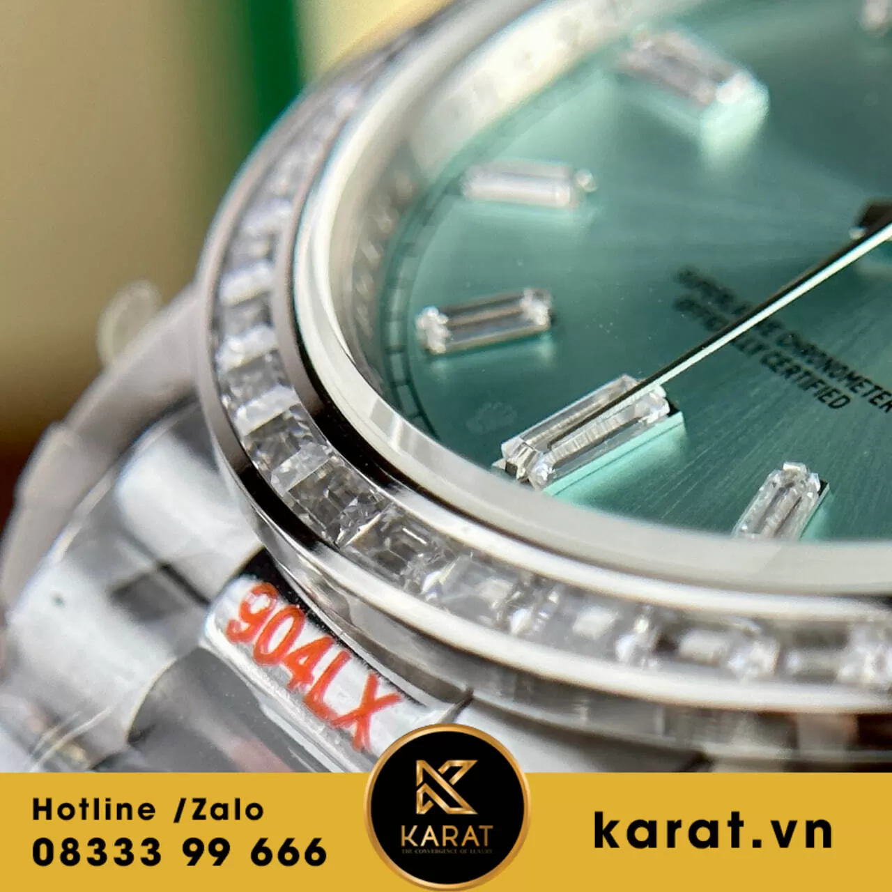 Đồng hồ Rolex Day-Date 40mm Ice Blue cọc số niềng đá Baguette 175g