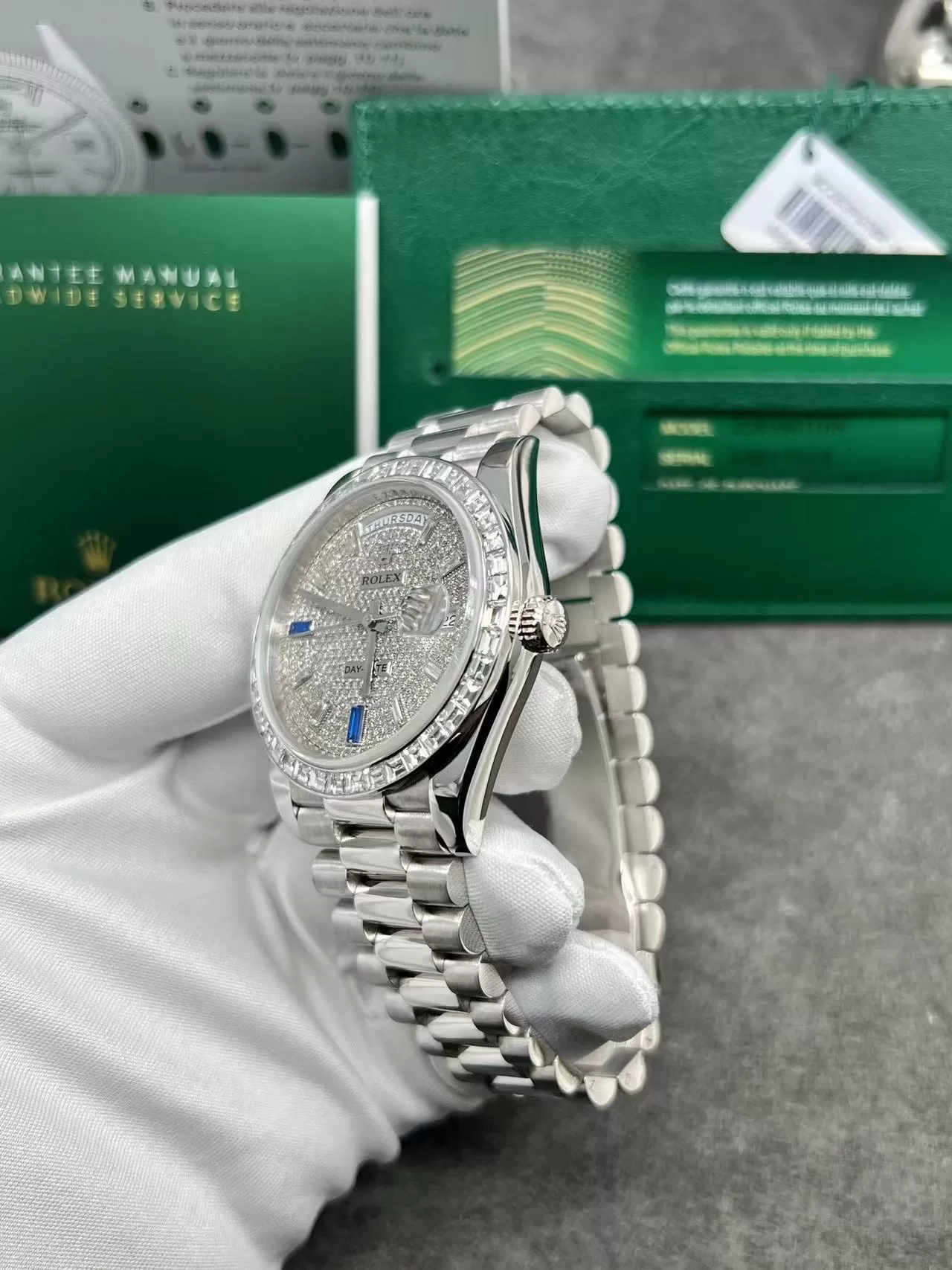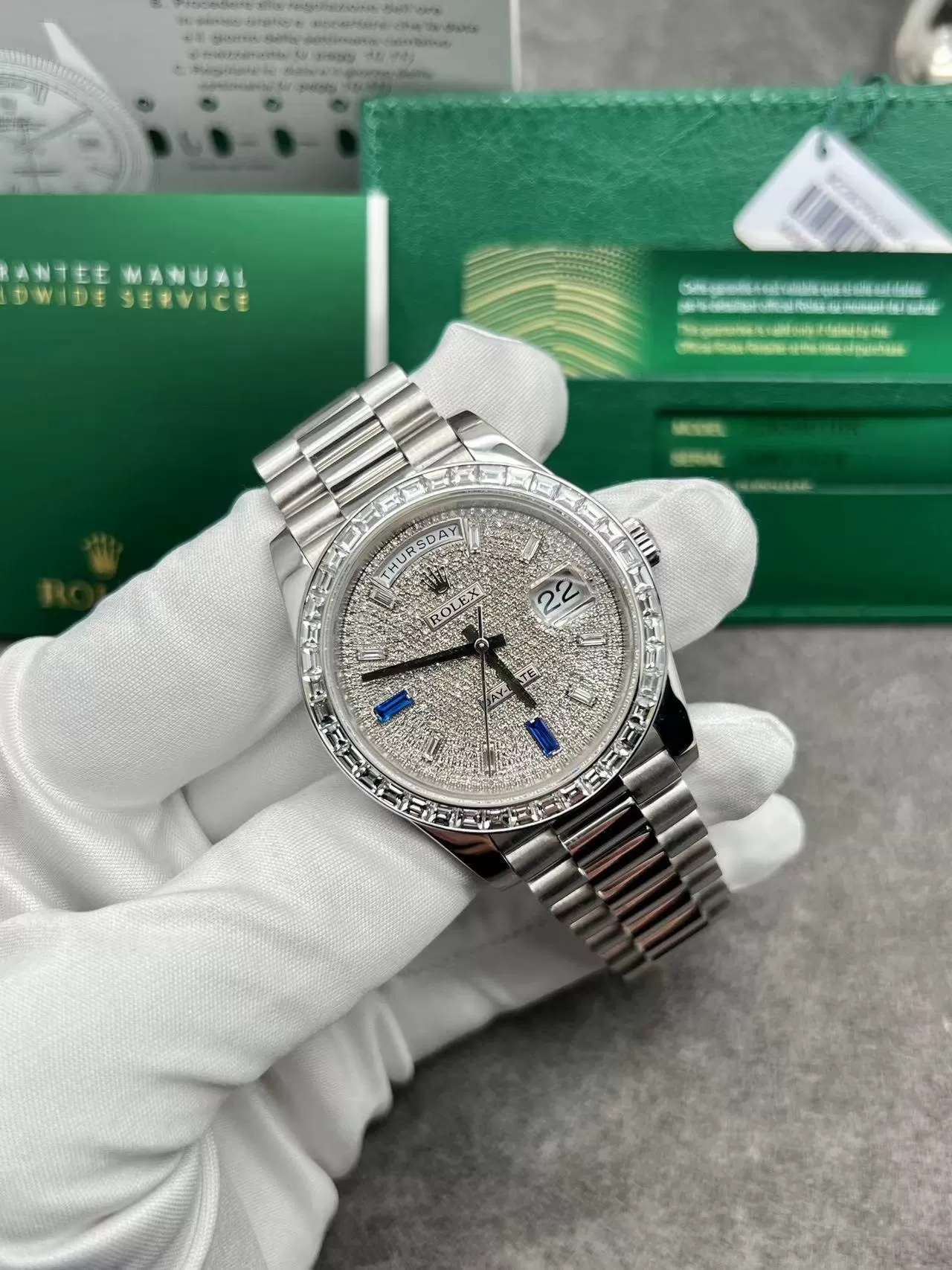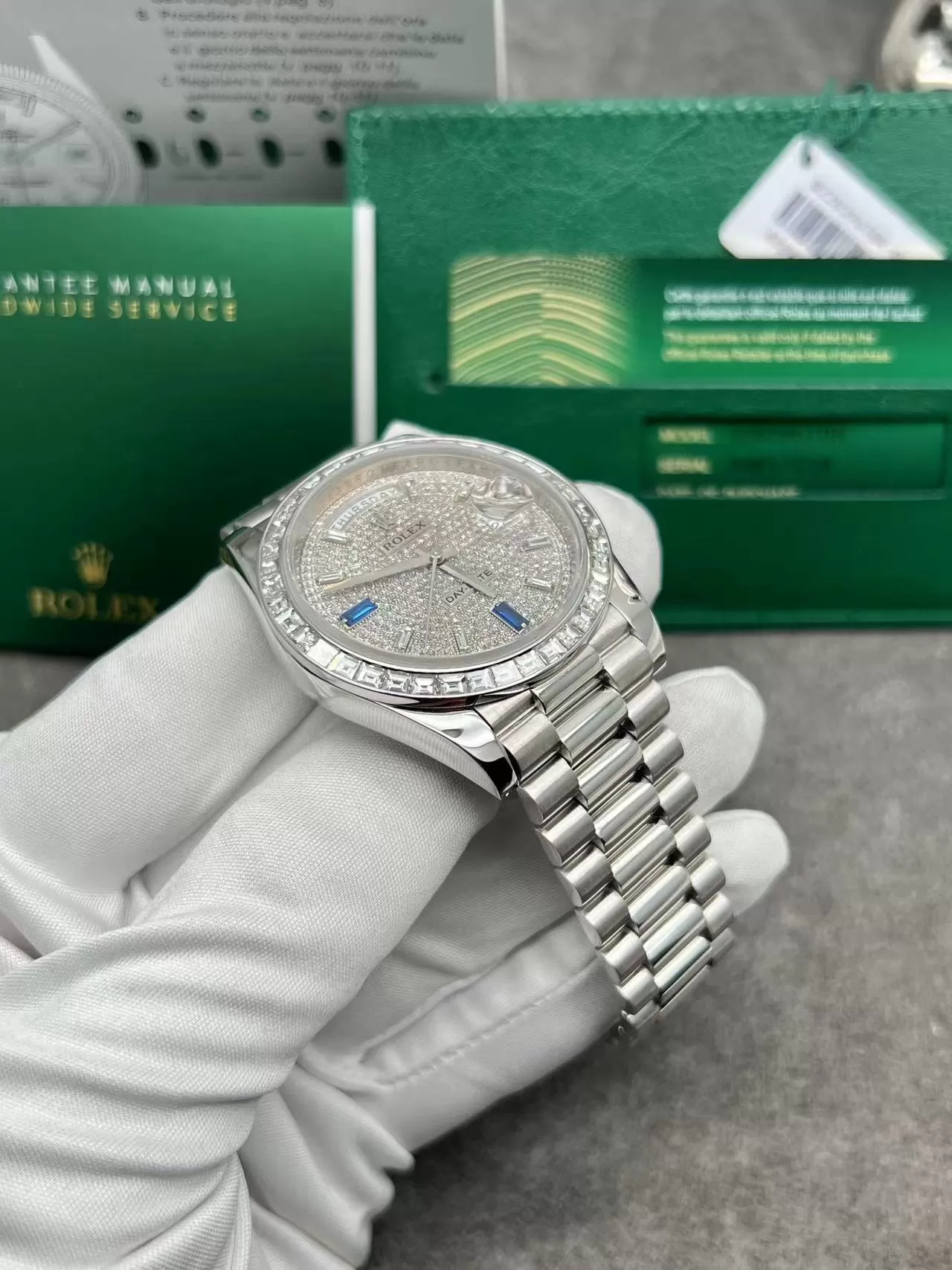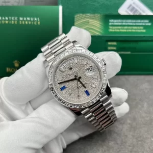 Chiêm ngưỡng vẻ đẹp đồng hồ Rolex Day-Date 40mm Vàng Trắng, Kim Cương Thiên Nhiên