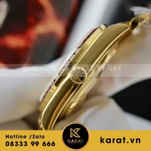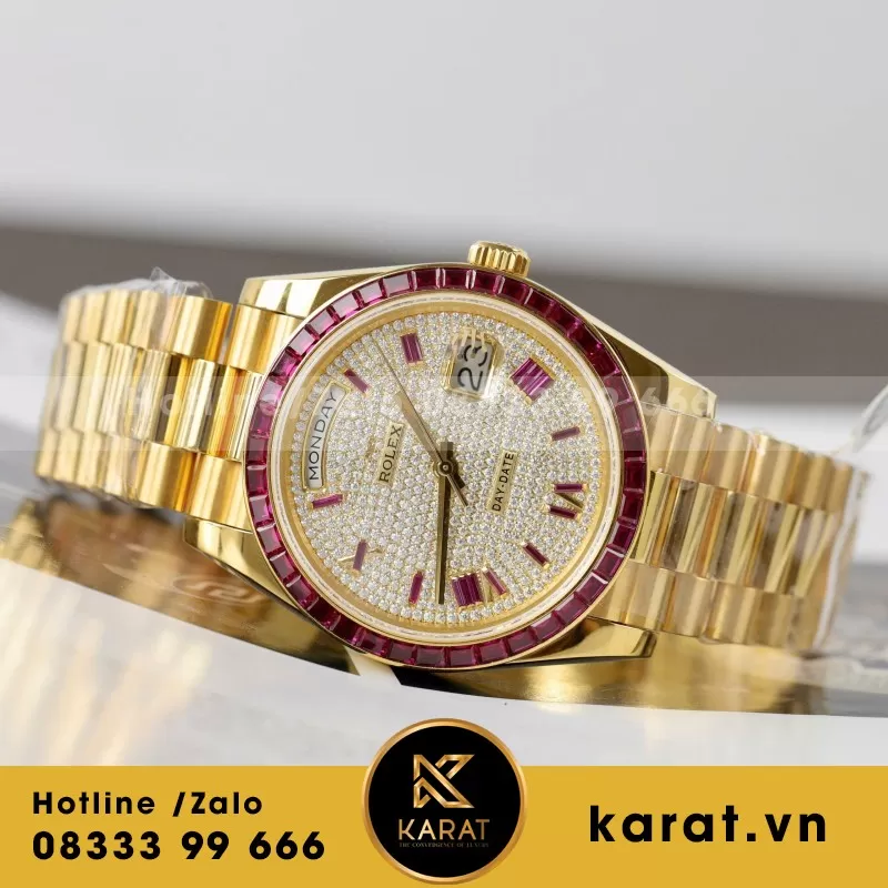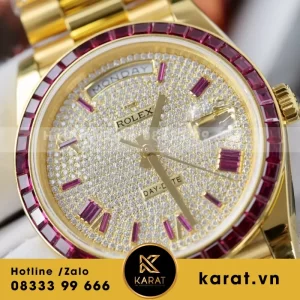 Đồng Hồ Rolex Day-Date Độ Ruby Đỏ + Kim Cương Moissanite Bọc Vàng Thật GMF 40mm