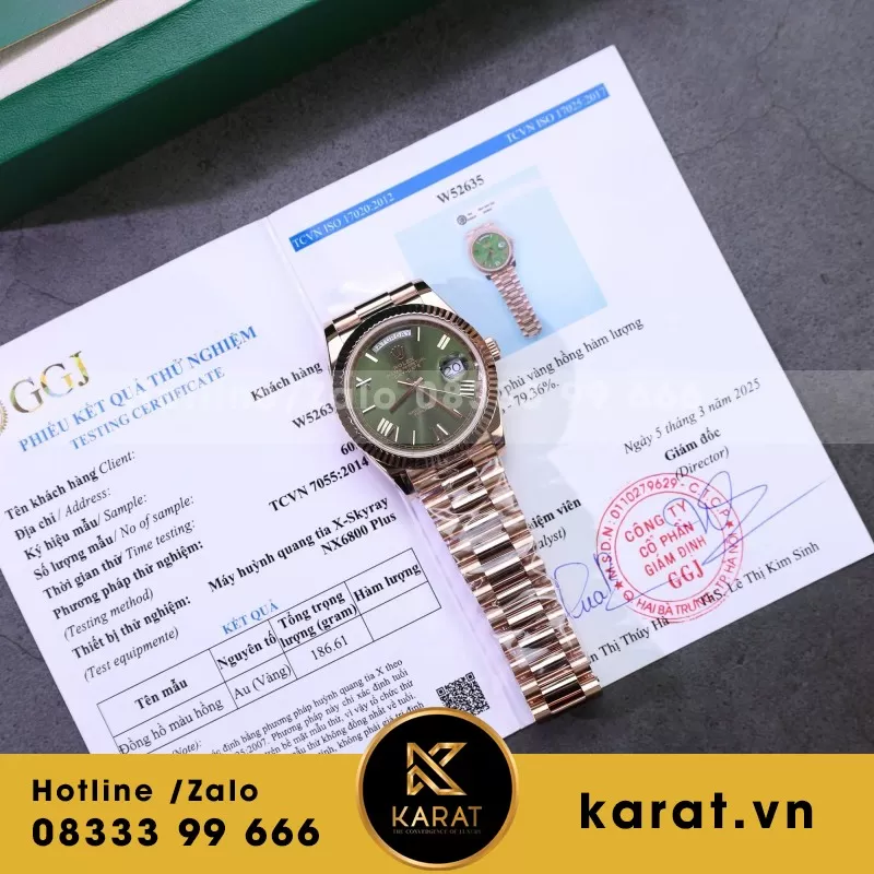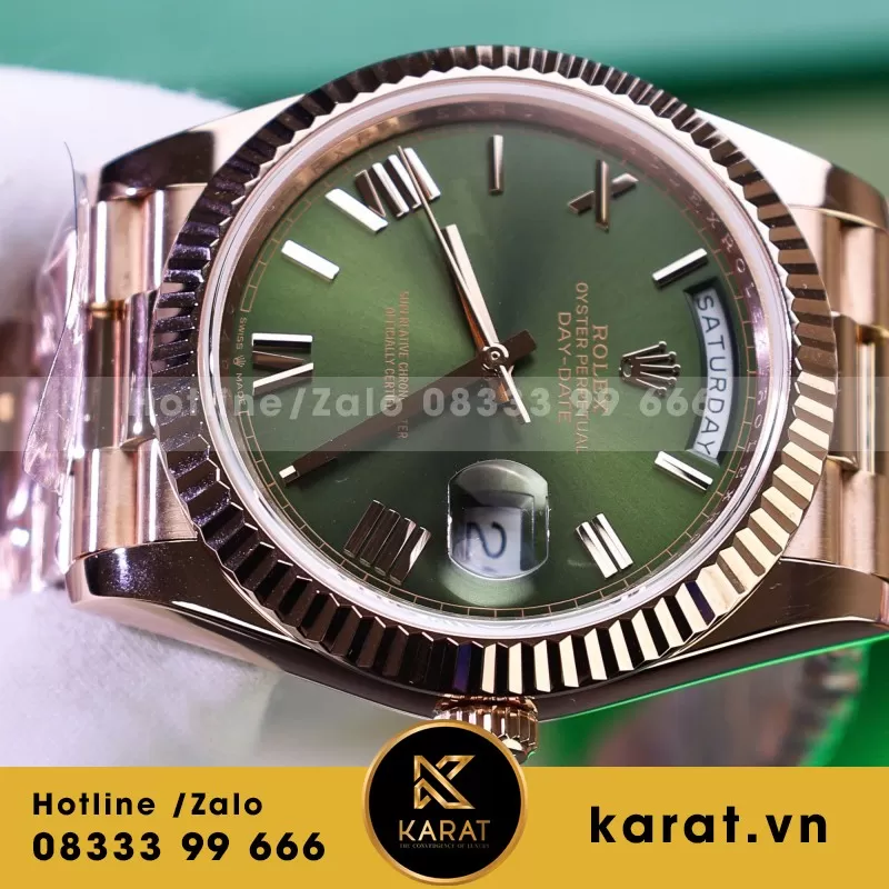 Karat.vn – Chuyên phân phối Đồng Hồ Rolex Day-Date Mặt Xanh Lá Bọc Vàng