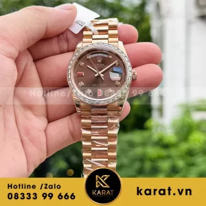 Đồng hồ rolex daydate 36mm bọc vàng viền moissanite baguette