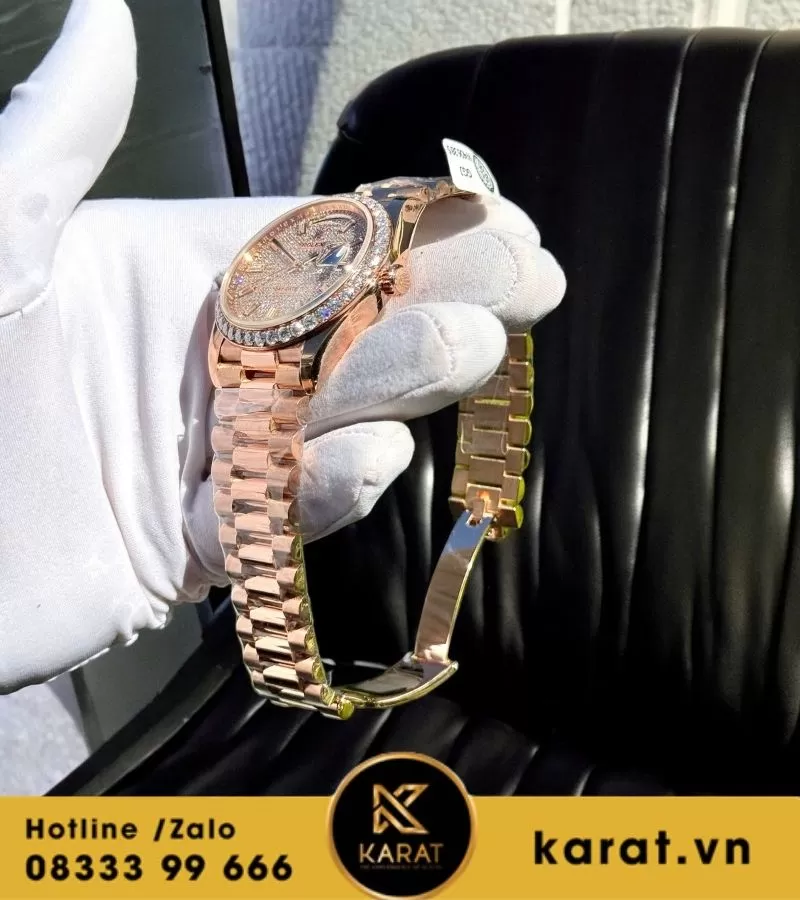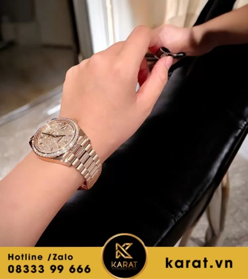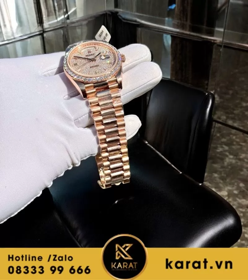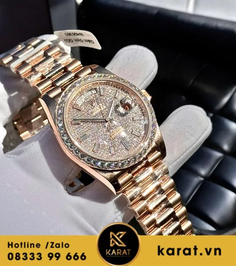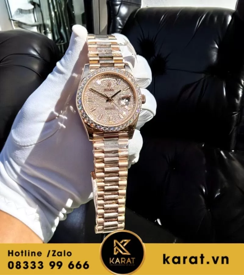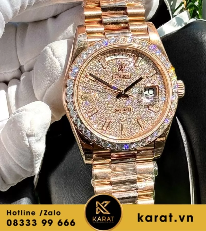 Đồng hồ Rolex Daydate 40 bọc vàng hồng độ moissanite