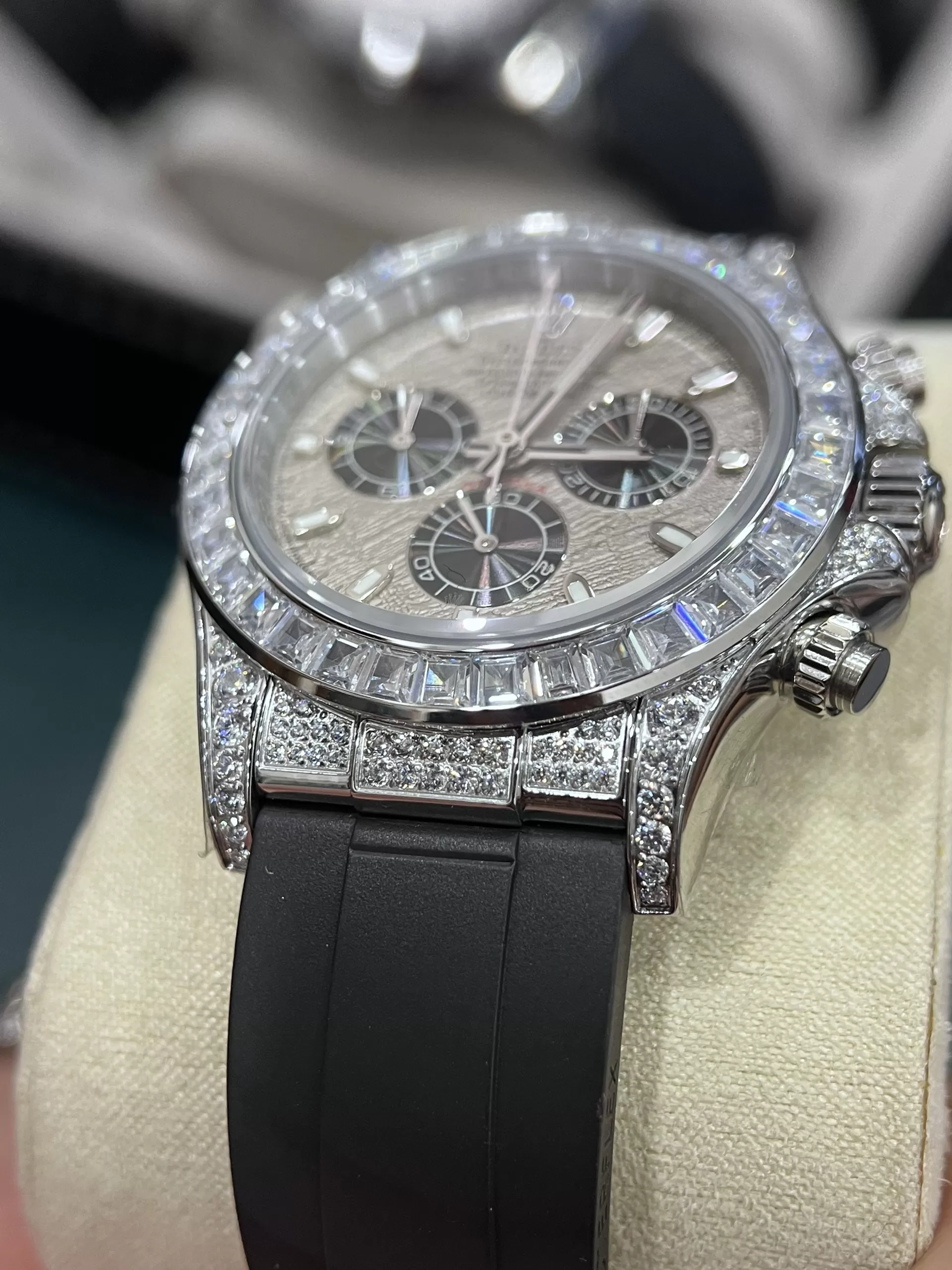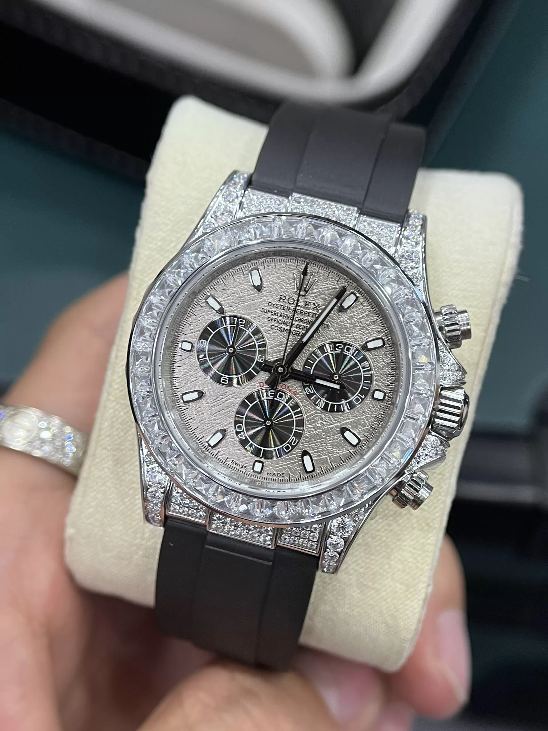 Địa chỉ mua đồng hồ Rolex Daytona 116519 Mặt Số Khảm Trai Viền Full Đá Siêu Cấp chất lượng