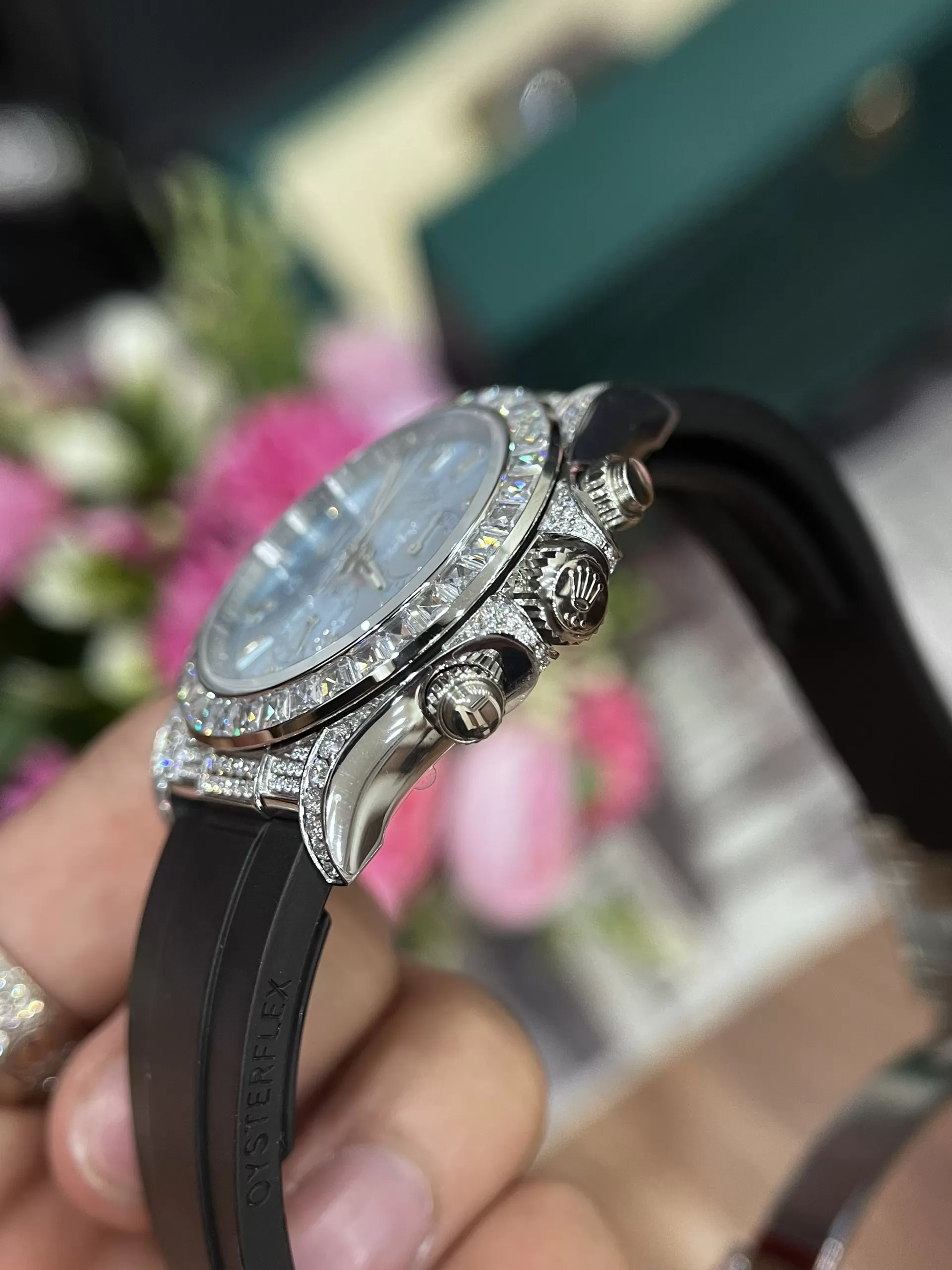 Mua đồng hồ Rolex Daytona 116519 Mặt Số Xanh Ngọc Viền Full Đá Like Auth ở đâu tốt?