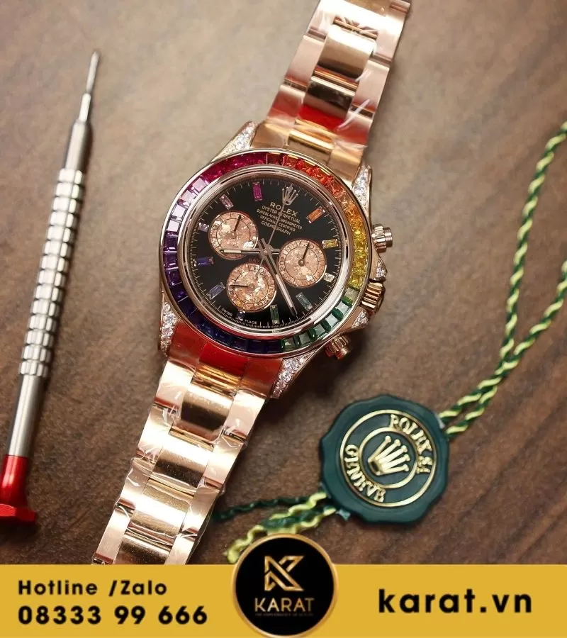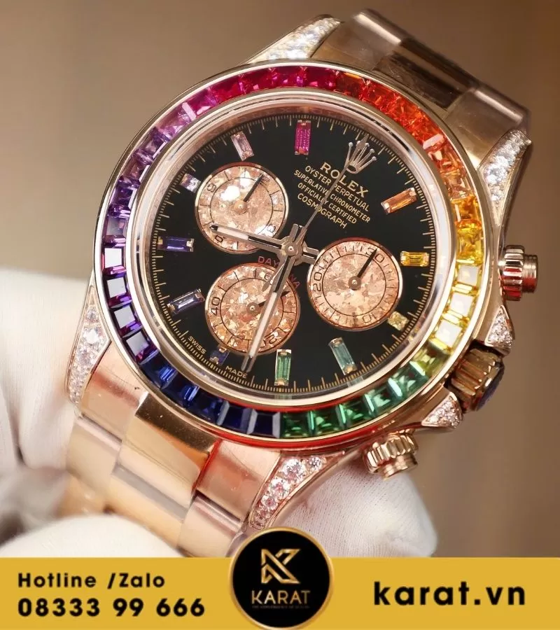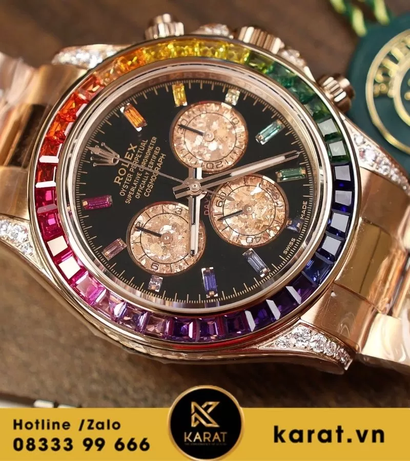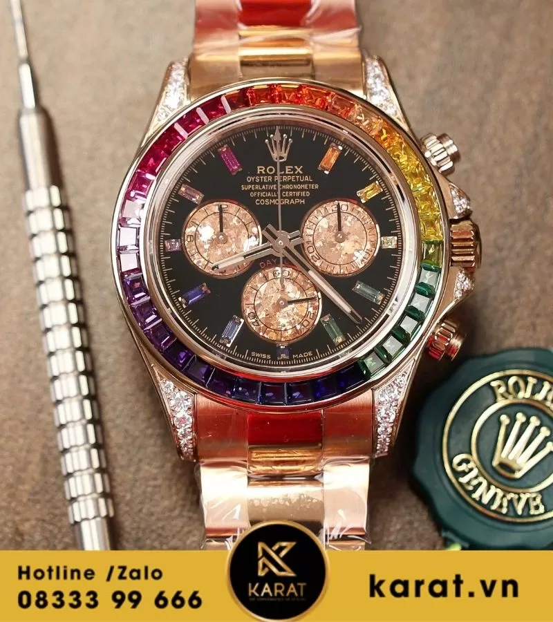 Đồng hồ Rolex Daytona 116595RBOW ‘Rainbow’ Rose Gold Black Dial king factory replica