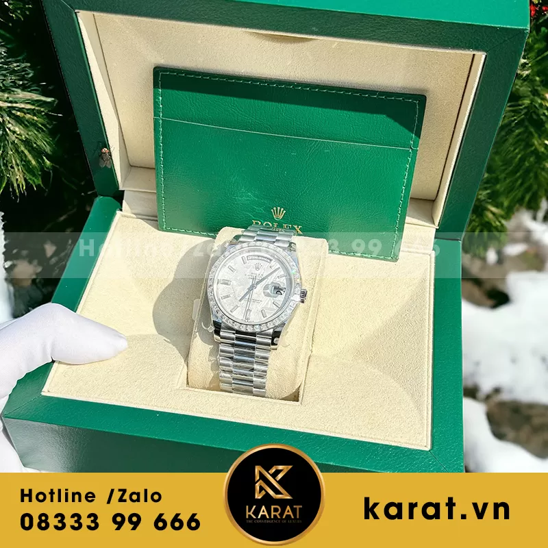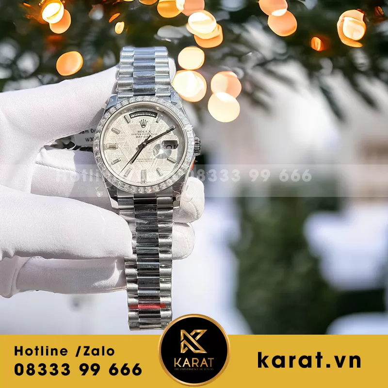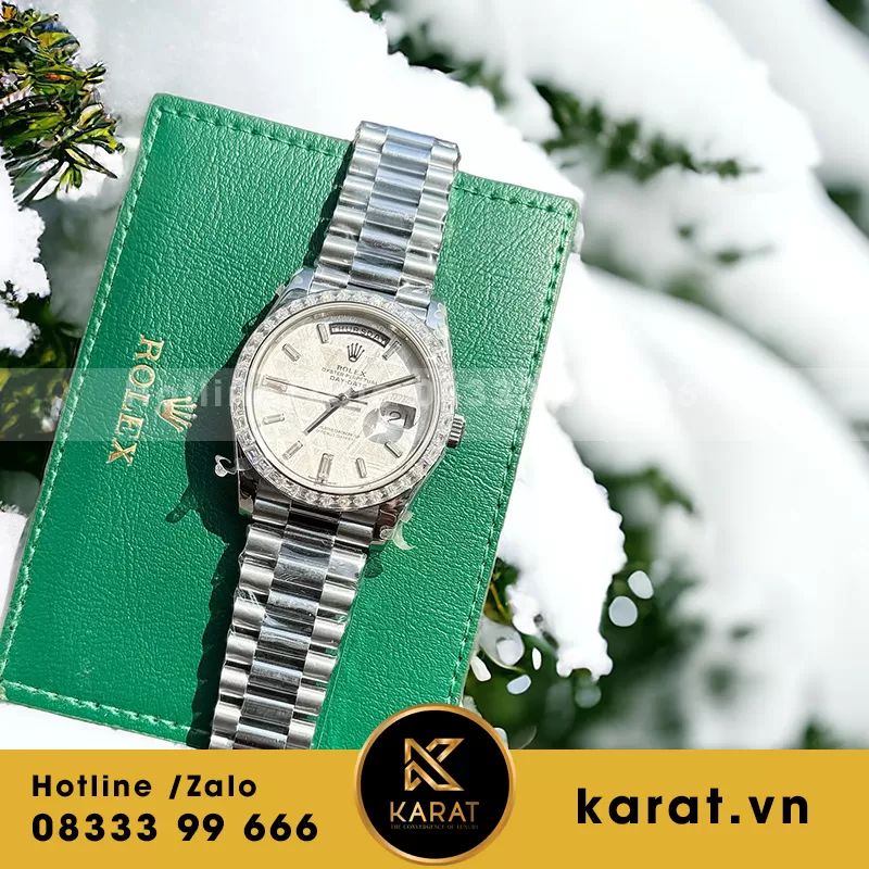 Đồng hồ rolex daytona 40mm độ mặt thiên thạch viền kim cương baguette moissanite
