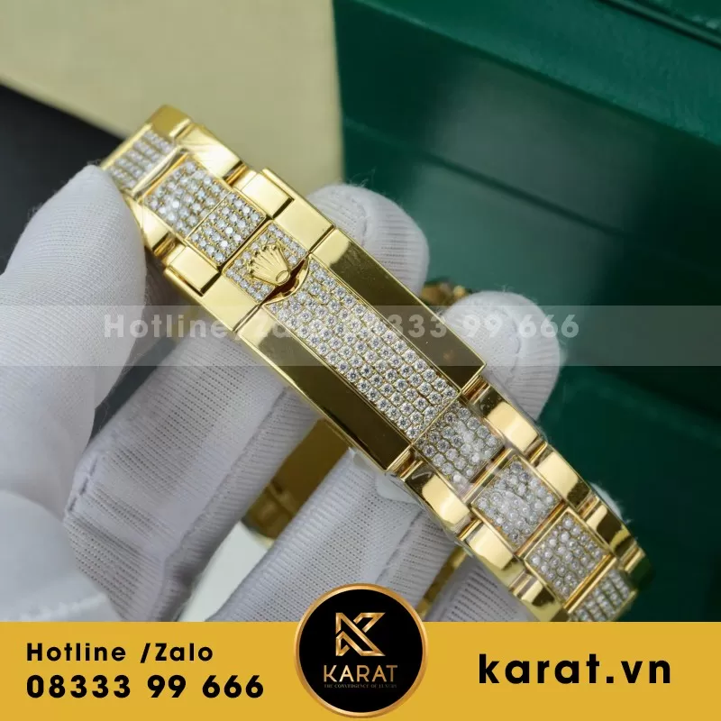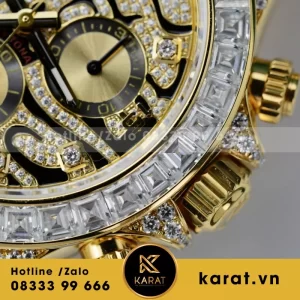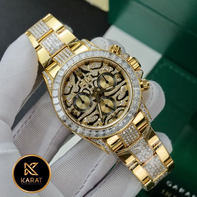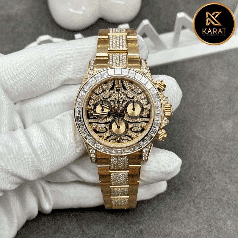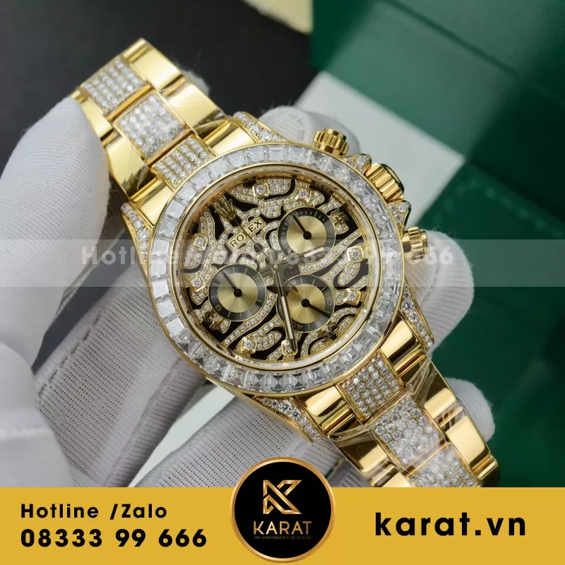Đồng Hồ Rolex Daytona chế tác bọc vàng độ moisasnite Eye Of Tiger 40mm không chỉ là món phụ kiện thời trang xa xỉ mà còn là tuyên ngôn của đẳng cấp và bản lĩnh. Với vẻ đẹp lộng lẫy, chế tác tinh xảo và bộ máy mạnh mẽ, đây là chiếc đồng hồ hoàn hảo cho những ai muốn khẳng định vị thế. Hãy ghé Karat.vn để trải nghiệm những mẫu đồng hồ rolex rep 1 1 sang trọng hôm nay.