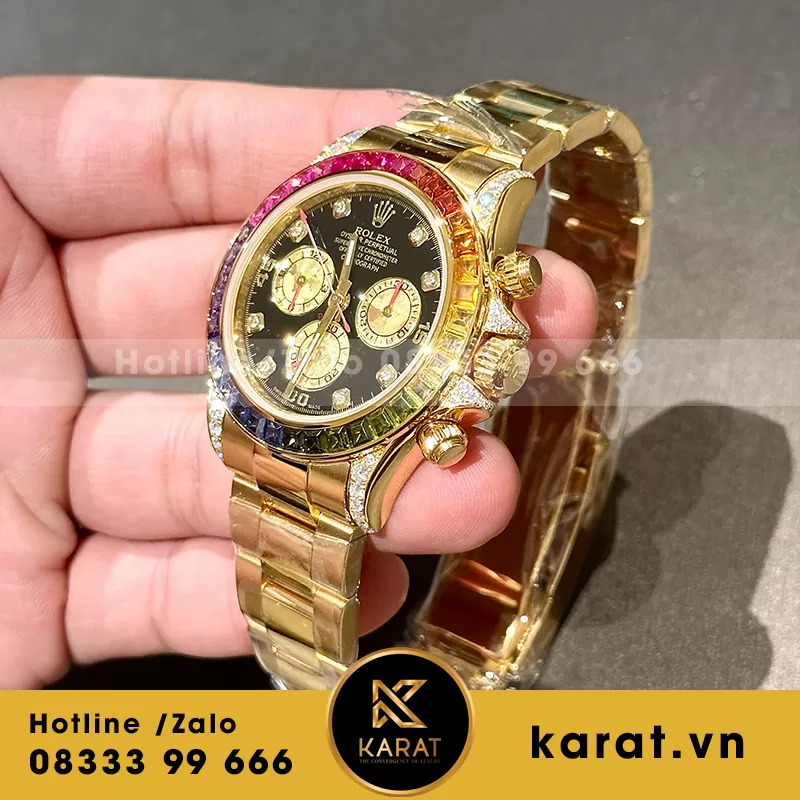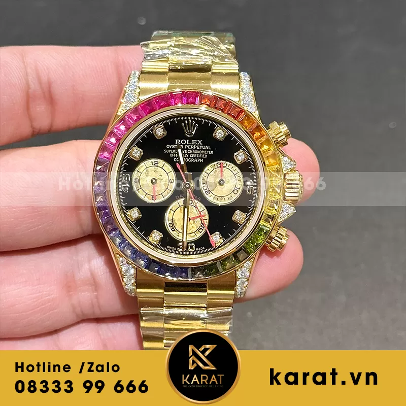 Đồng hồ rolex daytona rainbow 116598RBOW yellow gold bọc vàng moissanitte