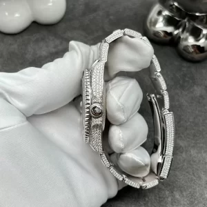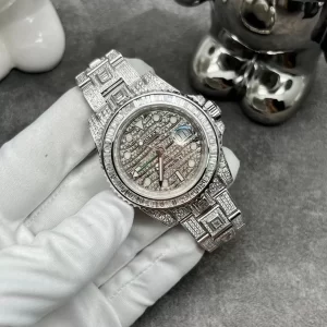 Từng chi tiết, từng bộ phận trên Đồng hồ Rolex replica siêu cao cấp đều được gọt giũa tỉ mẫn, công phu dưới bàn tay tài hoa của các nghệ nhân hàng đầu. Bộ khung vỏ được làm từ vàng trắng 18k đắt đỏ. Vành bezel đính kim cương thiên nhiên kích thước lớn lấp lánh.