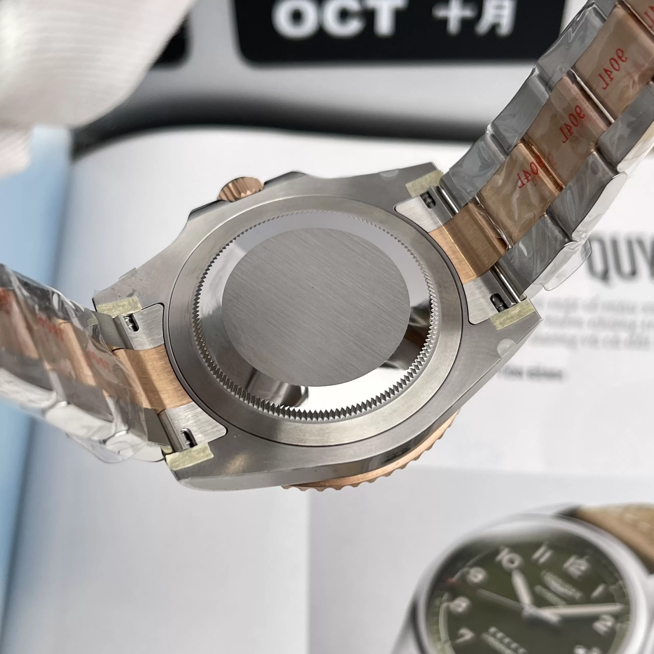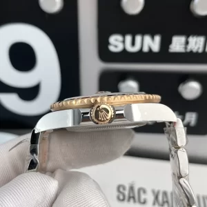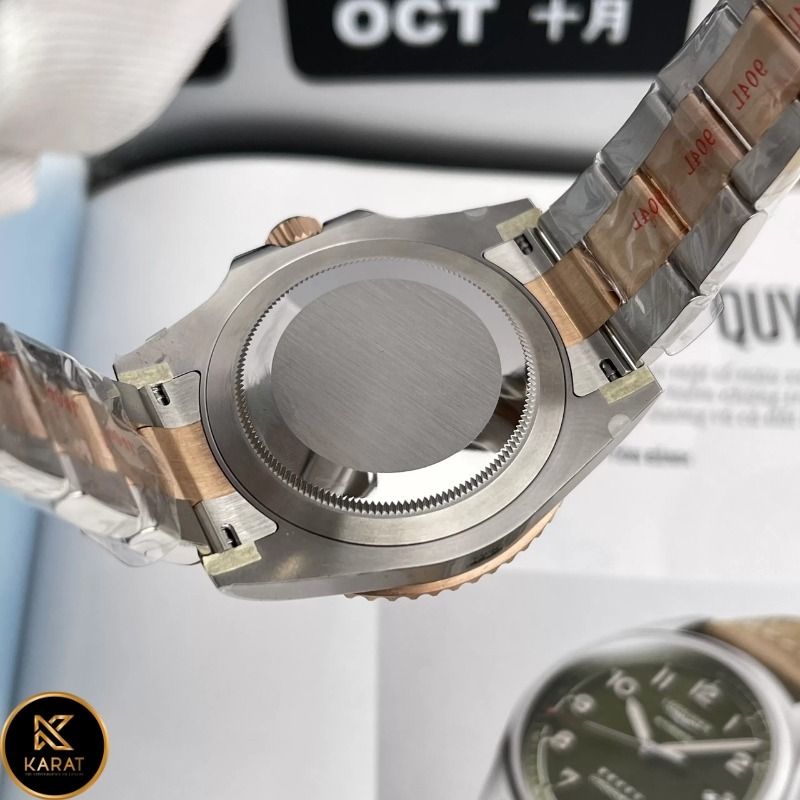 Bộ vỏ thép không gỉ demi rose gold nguyên khối, đường kính 40mm và dày 12.4mm, mang lại độ vững chãi vượt trội. Bezel xoay hai chiều Cerachrom Root Beer khắc thang đo 24 giờ chính xác, kết hợp kính sapphire chống xước, đảm bảo hiệu suất ổn định trong môi trường khắc nghiệt.