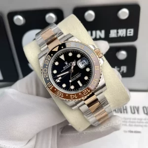 Ra mắt như biểu tượng phi hành gia từ những năm 1950, đồng hồ Rolex GMT-Master II 126711 like auth nổi bật với bezel Root Beer 2 tông màu nâu-đồng, tạo sức hút mạnh mẽ. Kích thước 40mm từ thép không gỉ demi rose gold đảm bảo sự cân đối, bộ máy Calibre 3285 tự động mang độ chính xác chronometer. Sản phẩm không chỉ theo dõi thời gian mà còn khẳng định phong cách qua thiết kế Oyster bền bỉ, lý tưởng cho lối sống năng động với chống nước tốt và dự trữ năng lượng ấn tượng.